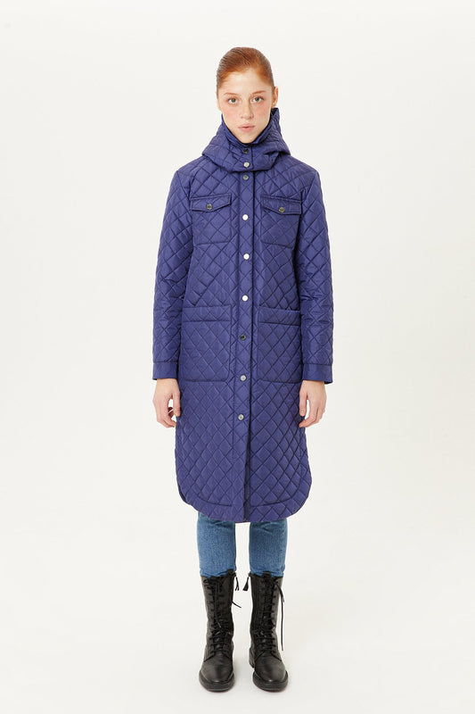 Lacivert Kapüşonlu Kapitone Uzun Mont