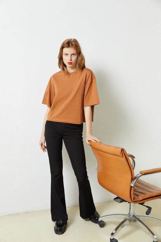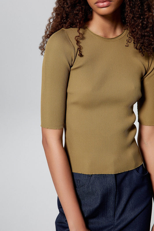 İndirimHaki Basic Kısa Kollu Triko Bluz