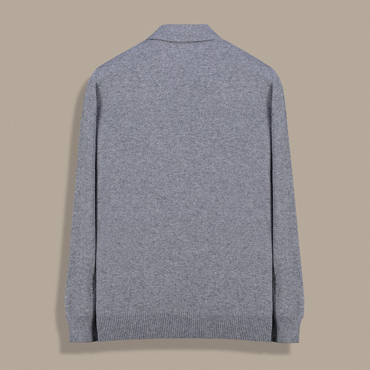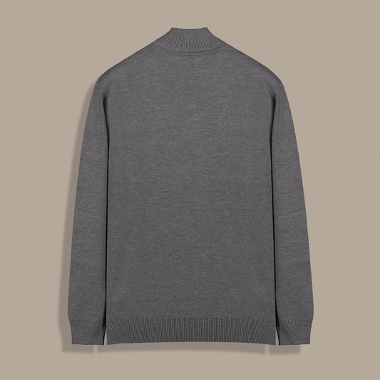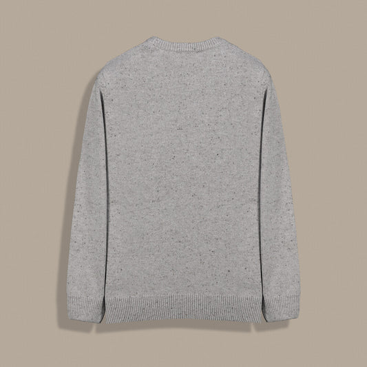 Bisiklet Yaka Dokulu Gri Triko Kazak