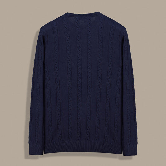 Bisiklet Yaka Dokulu Lacivert Triko Kazak