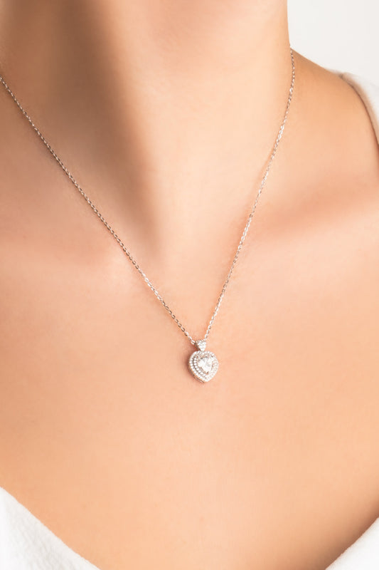 Mozanit Dokunuş 18 Ayar Beyaz Altın Kaplama 45 Cm Gümüş Kalp Kolye 5170960199