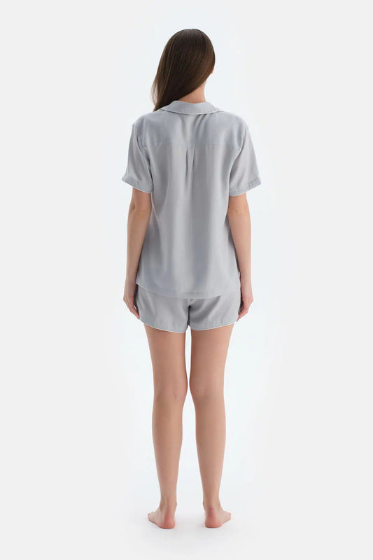 İndirimAçık Gri Biyeli Dokuma Şort