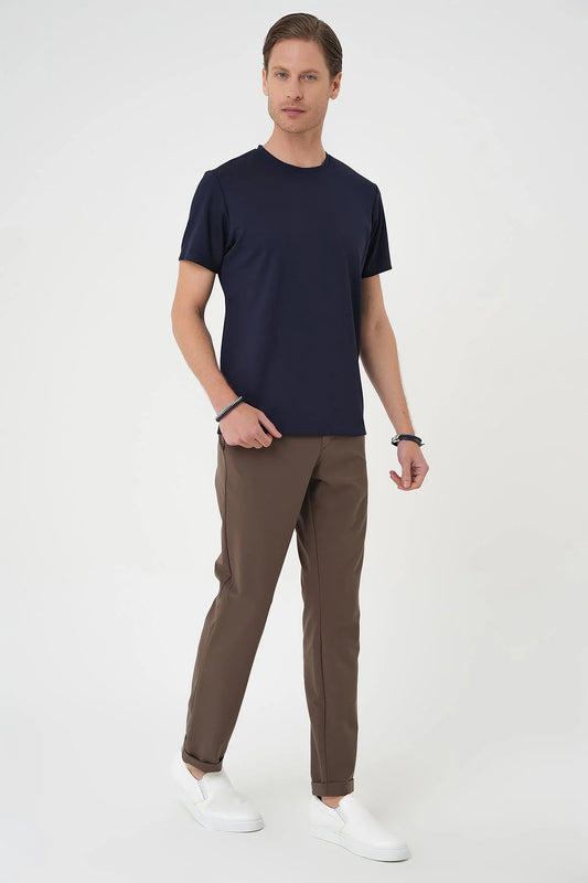 Ts 885 Comfort Fit Bisiklet Yaka Esnek Pamuk Casuel Koyu Lacivert Tişört