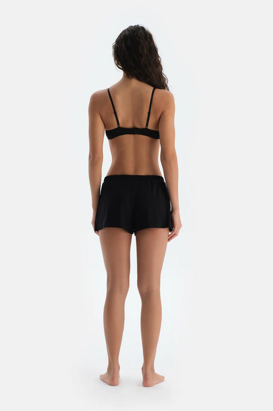 Siyah Basic Yanı Şerit Dantel Detaylı Şort