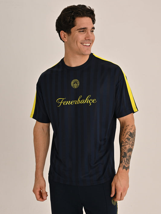 Fenerbahçe Lacivert Tribün Jakarlı Erkek Oversize Tshirt