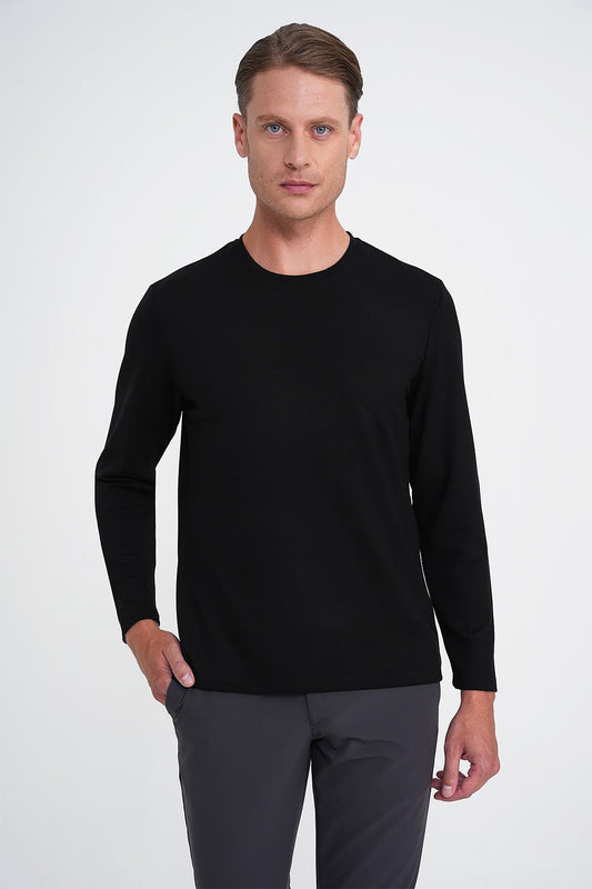 Ts 892 Comfort Fit Bisiklet Yaka Uzun Kol Casuel Siyah Tişört