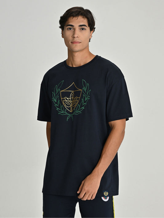 Fenerbahçe Lacivert Kolej Çelenk Logolu Erkek Oversize Tshirt