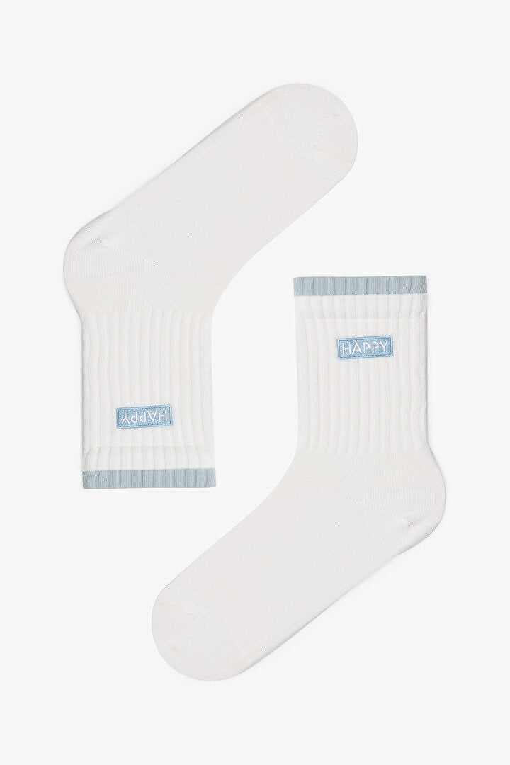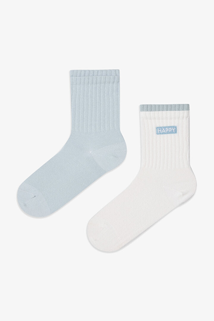 2 Çift Pamuklu Happy Dokuma Etiketli Soket Çorap Phsstw0s25sk-bmv - Beyaz - Mavi - Penti
