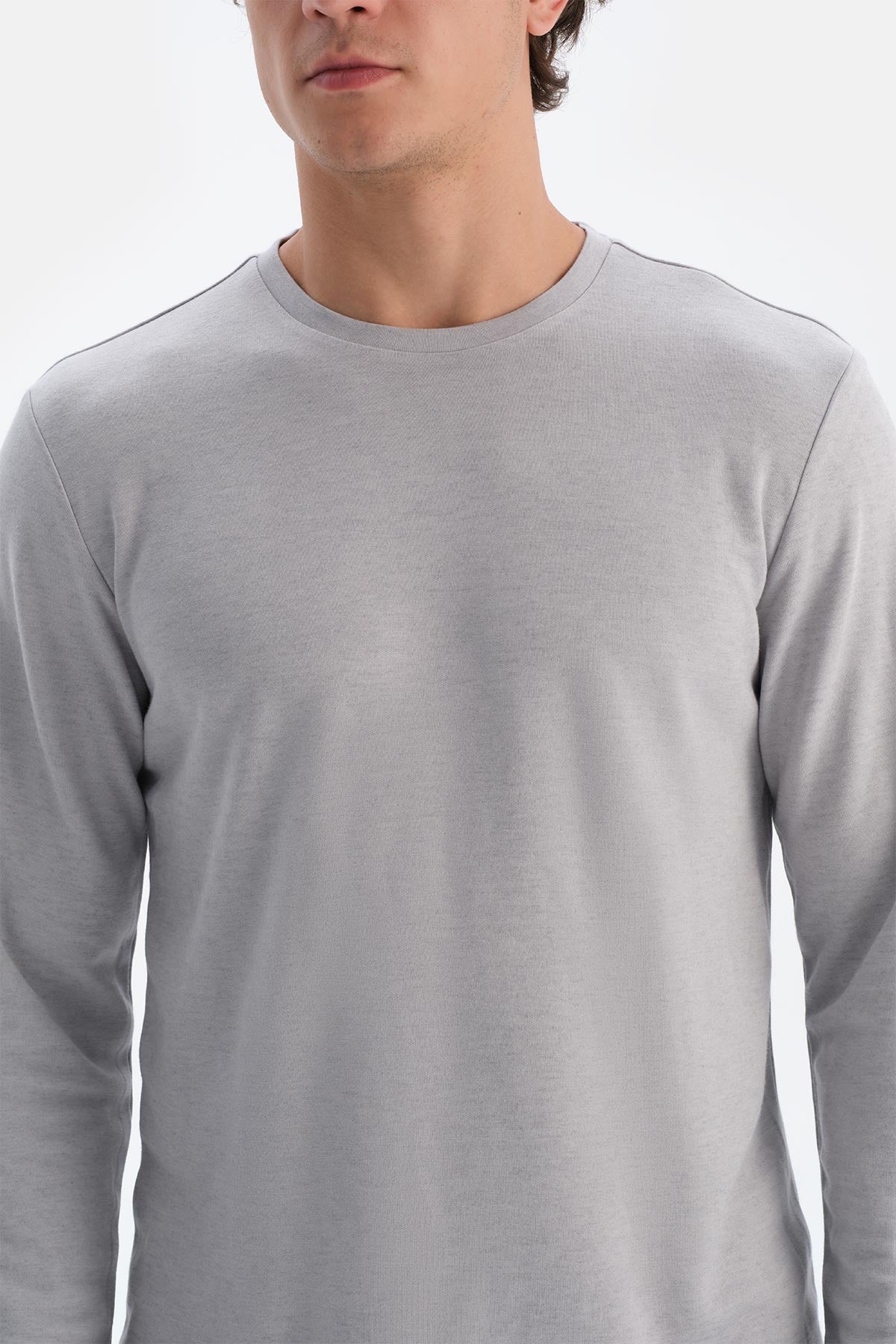 Açık Gri Bisiklet Yaka Uzun Kollu Yünlü Pijama Takımı