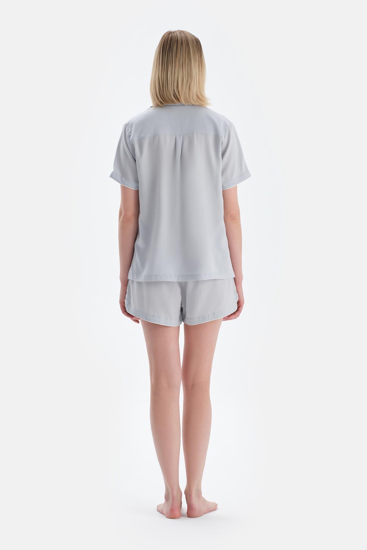 Açık Gri Biyeli Kısa Kollu Dokuma Gömlek