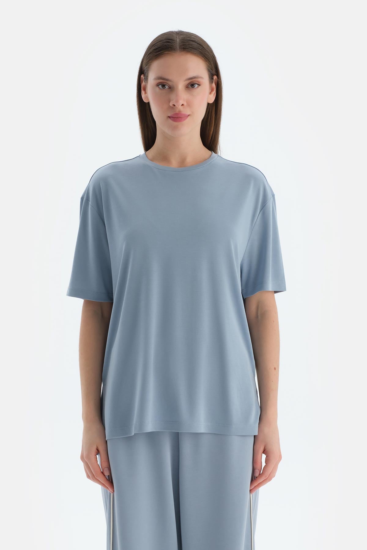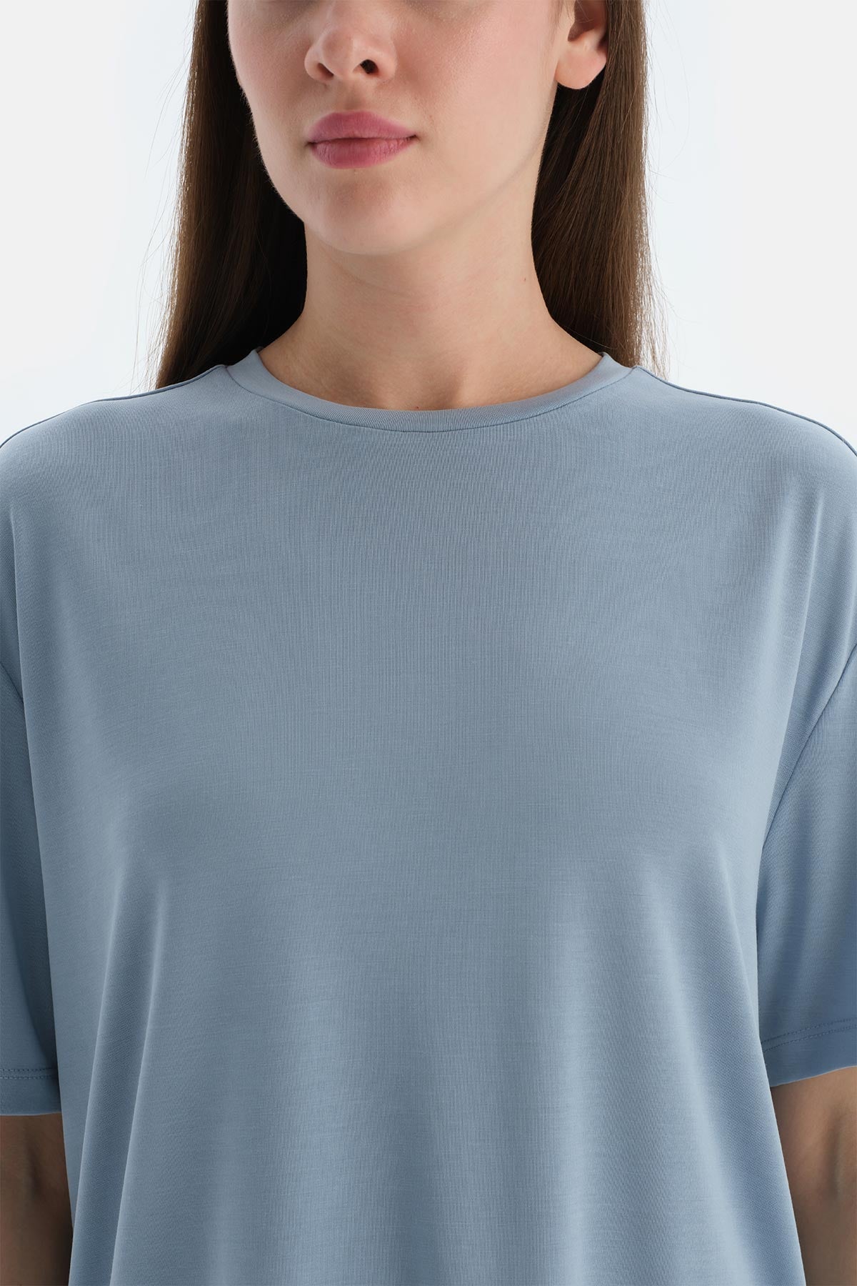 Açık Mavi Kadın Modal Yırtmaç Detaylı Tişört 25SW11383BB_341 şimdi Dagi'de. Kaliteli, konforlu ve özel fiyatlarla sizleri bekliyor.