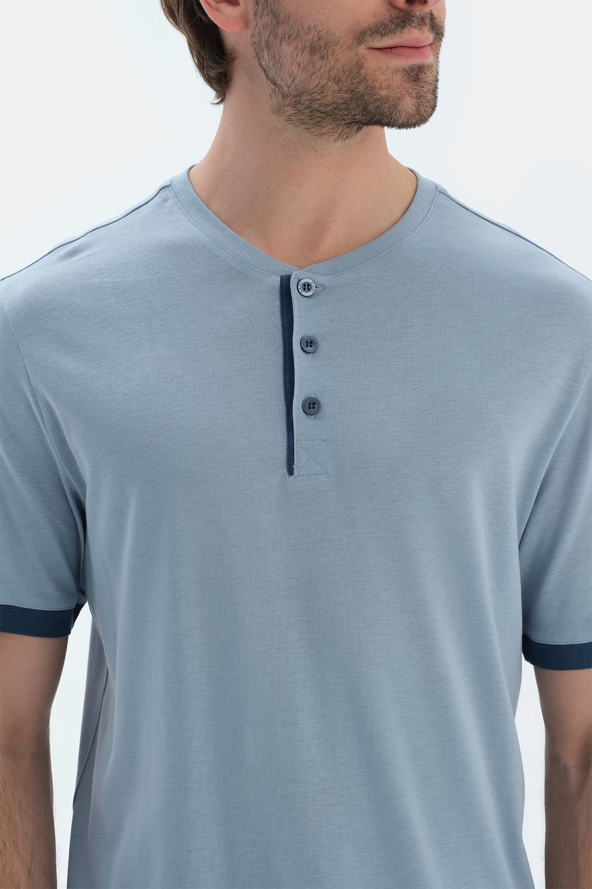 Açık Mavi Kısa Kollu Patlı Basıc Tişört Pantolon Pijama Takımı 25SM18568ME_341 şimdi Dagi'de. Kaliteli, konforlu ve özel fiyatlarla sizleri bekliyor.