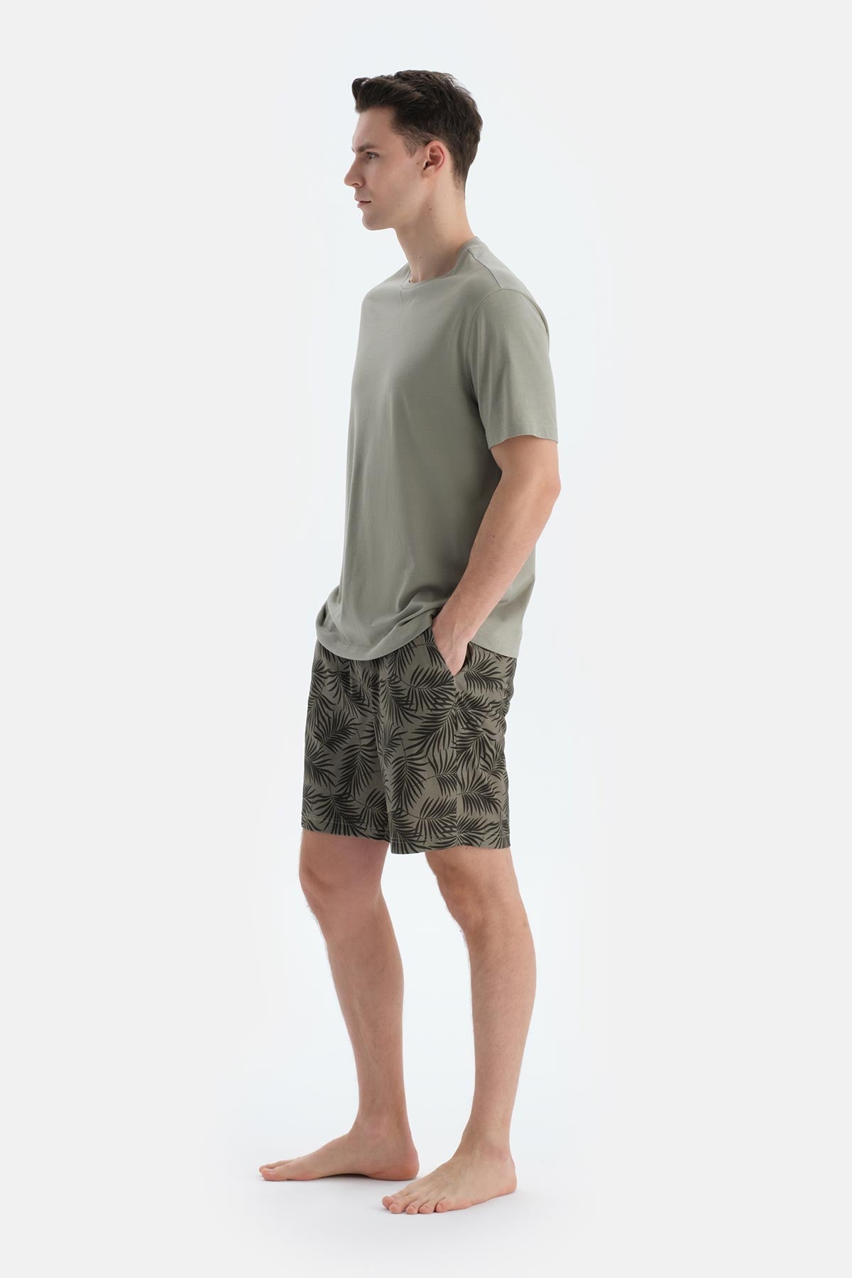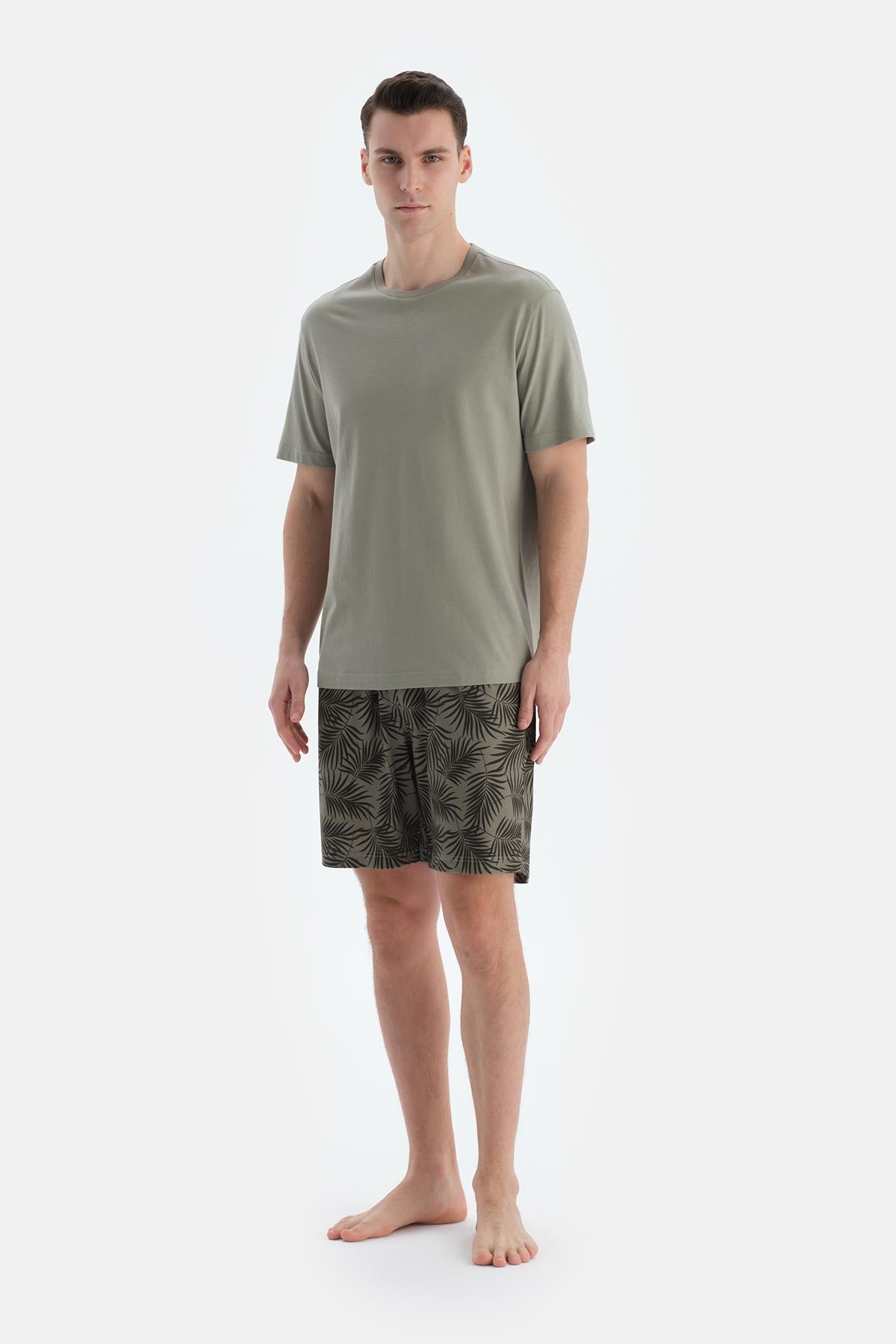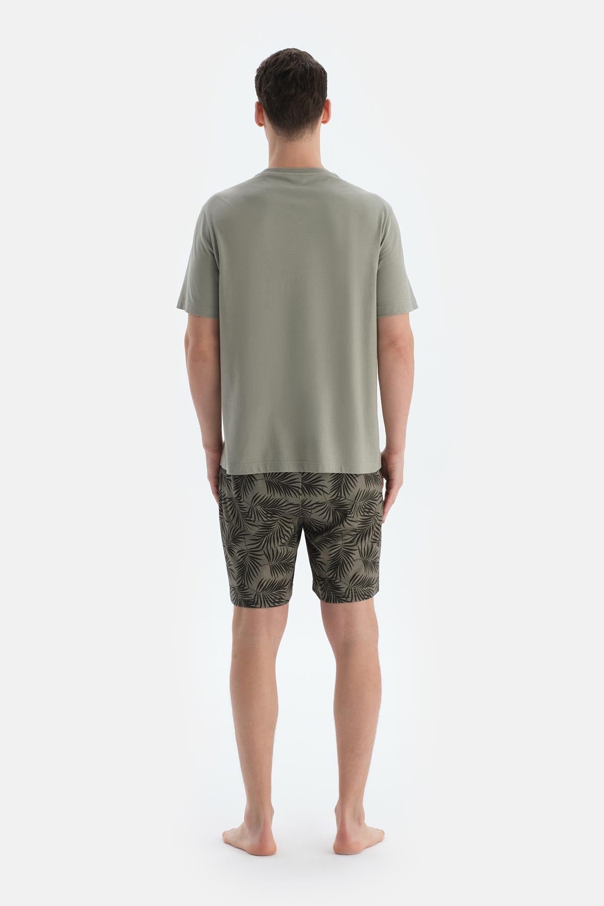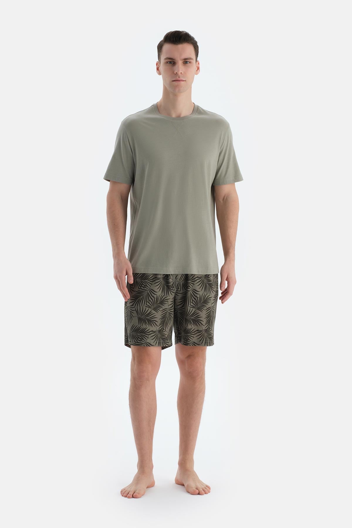 Açık Yeşil Baskı Ve Dikiş Detaylı Tişört Şort Pijama Takımı