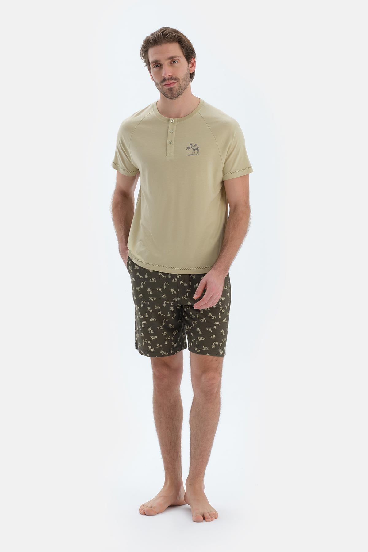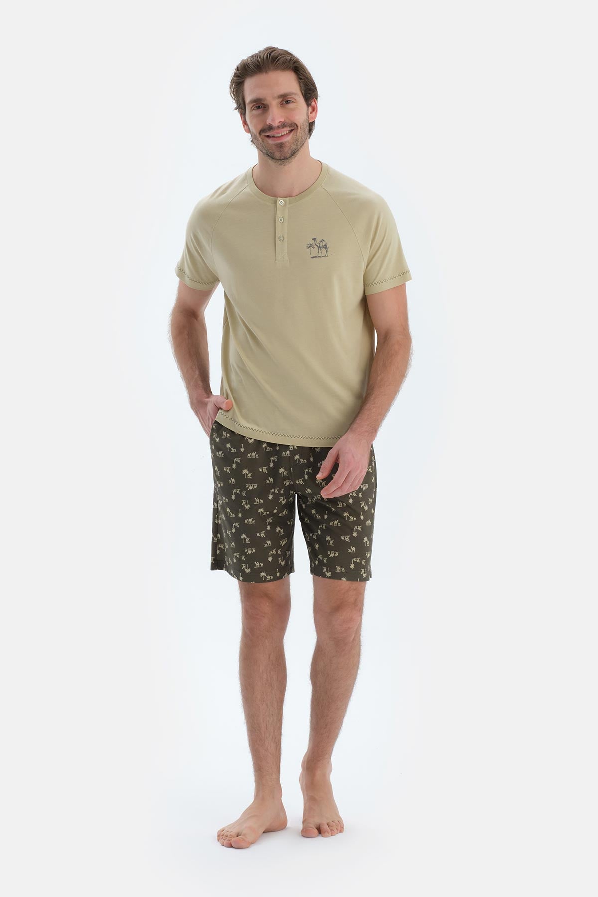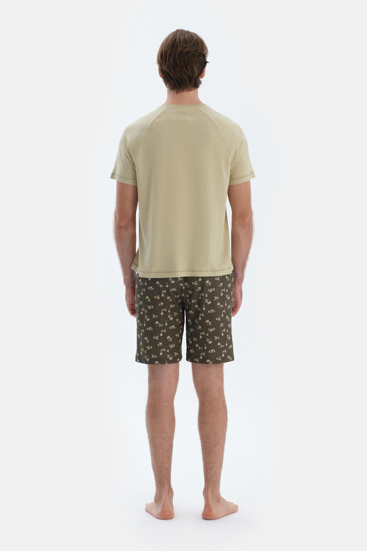 Açık Yeşil Kısa Kollu Baskı Detaylı Tişört Şort Pijama Takımı