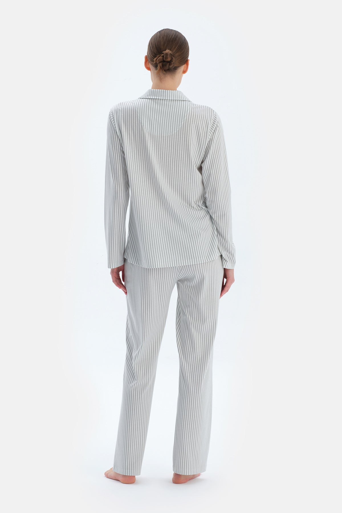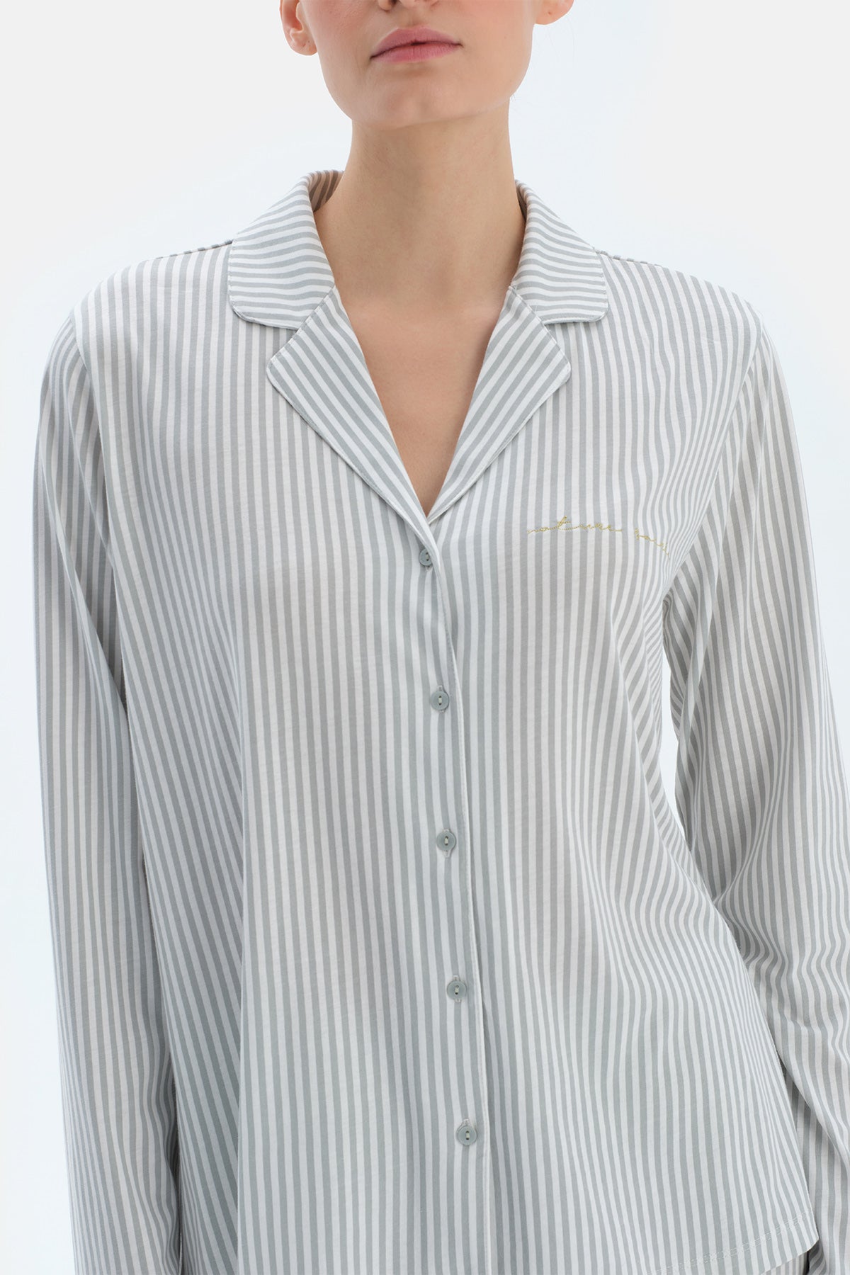 Ada Çayı Çizgili Basıc Gömlek Pantolon Pijama Takımı