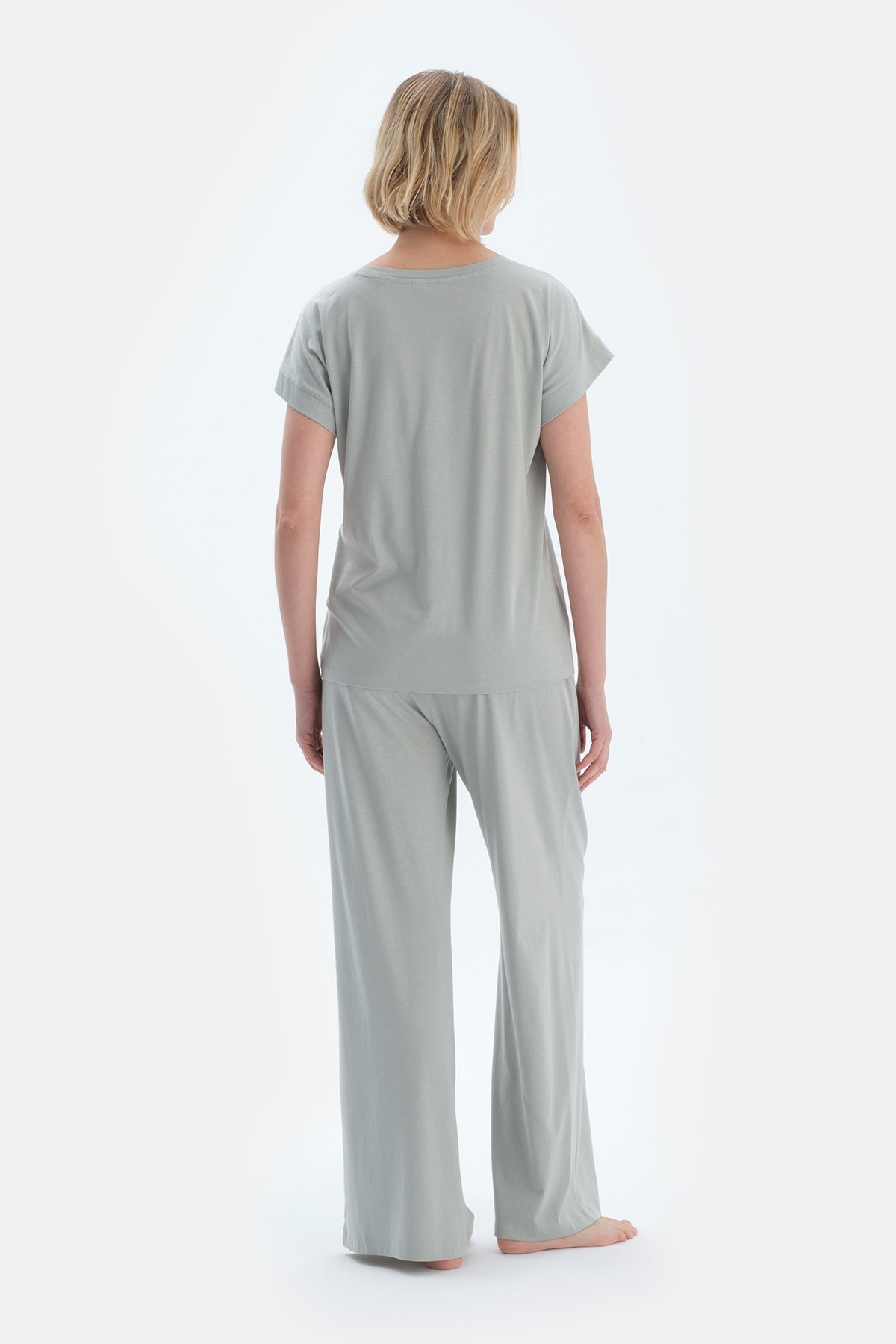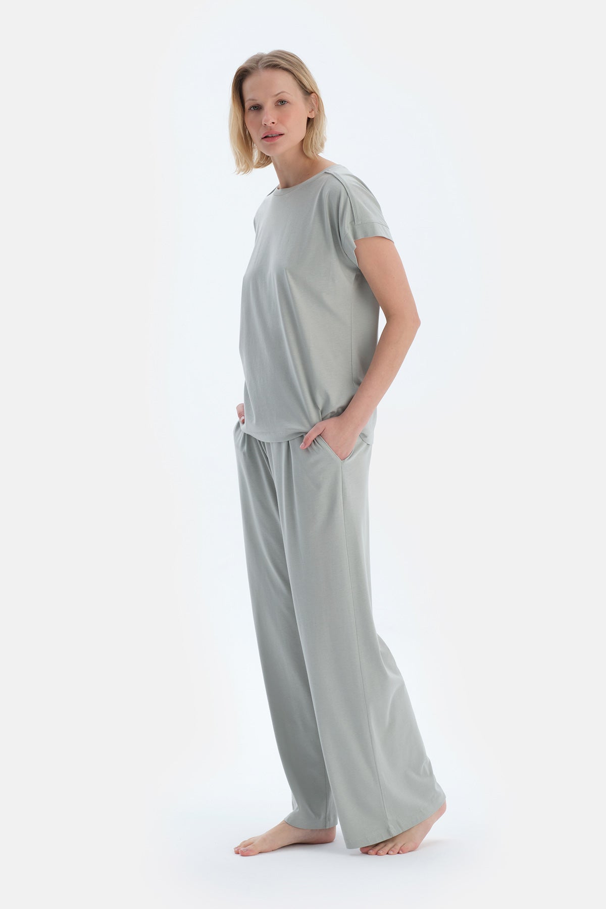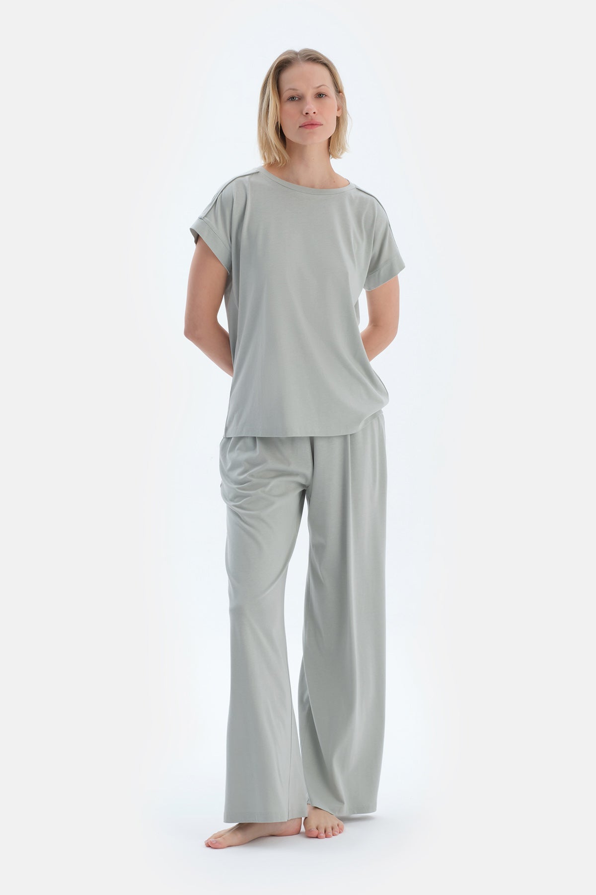 Ada Çayı Düşük Kollu Basıc Tişört Pantolon Pijama Takımı