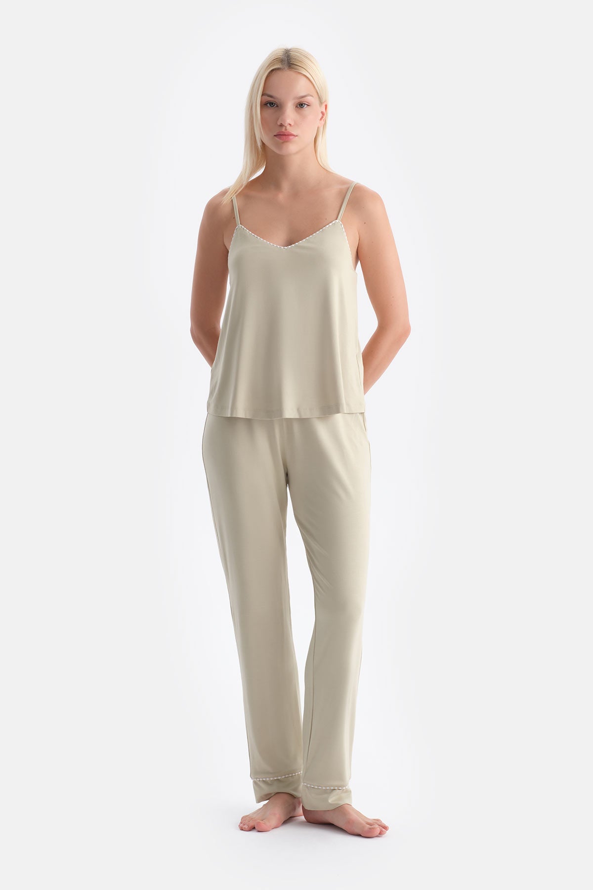 Ada Çayı V Yaka Ince Askılı Viskon Atlet Pantolon Pijama Takımı 25SW17648BB_403 şimdi Dagi'de. Kaliteli, konforlu ve özel fiyatlarla sizleri bekliyor.