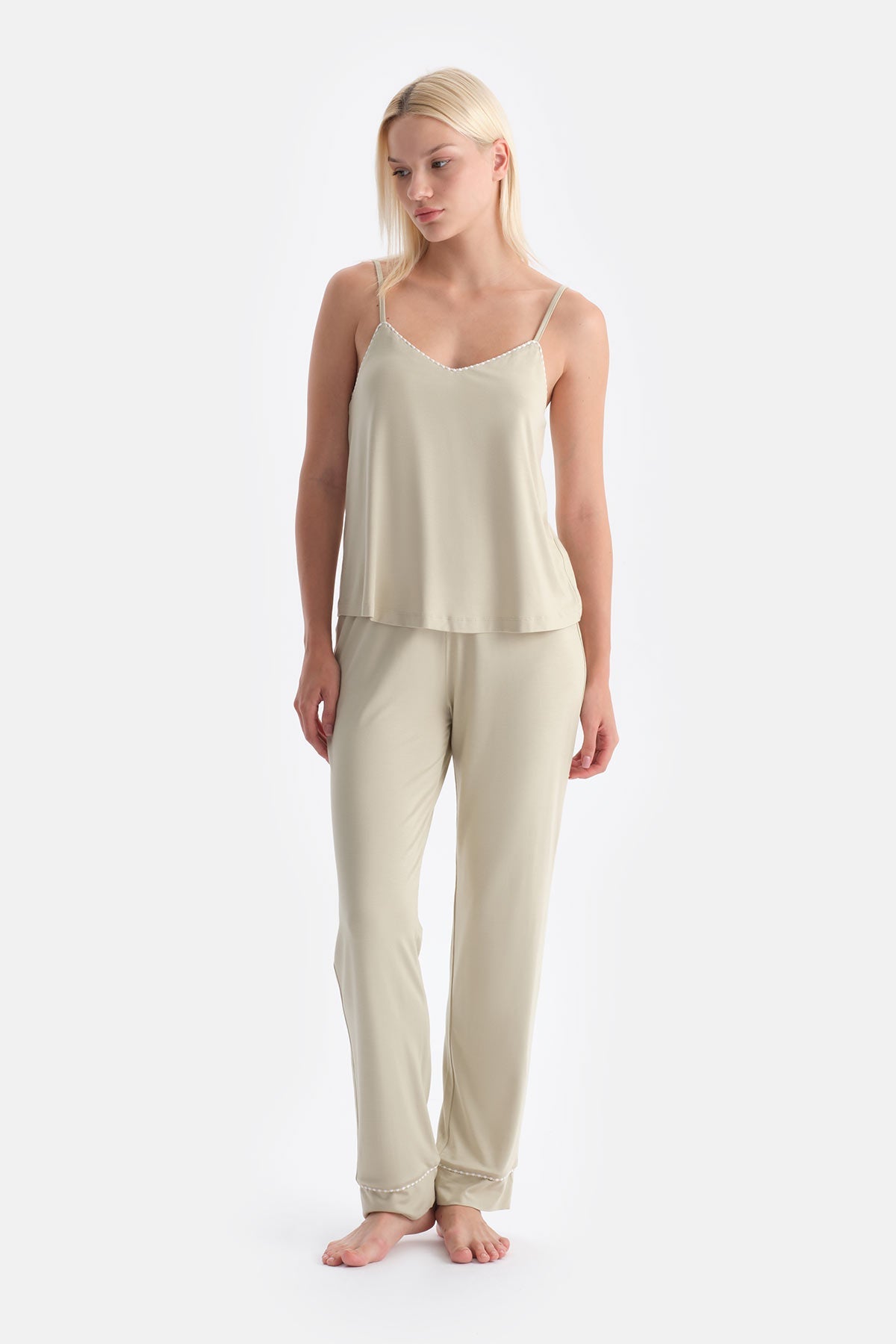 Ada Çayı V Yaka Ince Askılı Viskon Atlet Pantolon Pijama Takımı