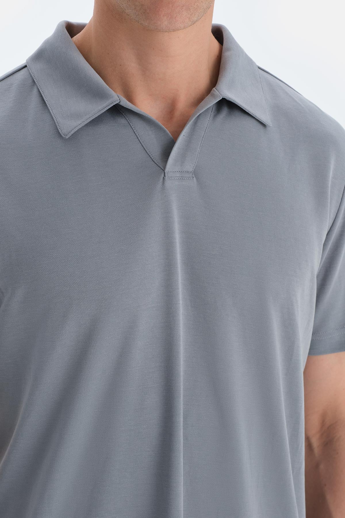 Antrasıt Polo Yaka Kısa Kollu Modal Pike Tişört