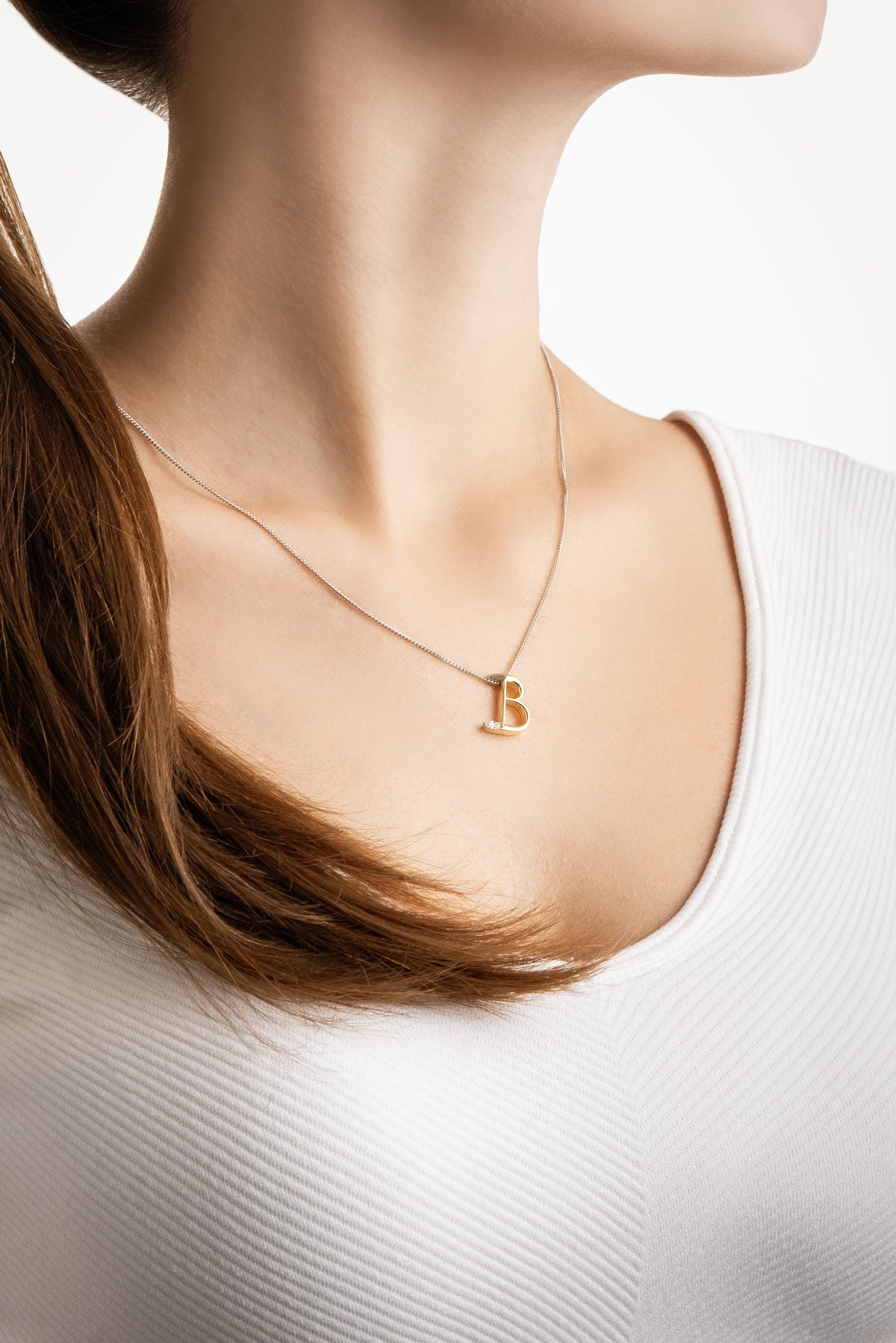 Asimetrik B Harfi 18 Ayar Beyaz Ve Sarı Altın Kaplama 45 Cm Gümüş Harfli Kolye 07302010144