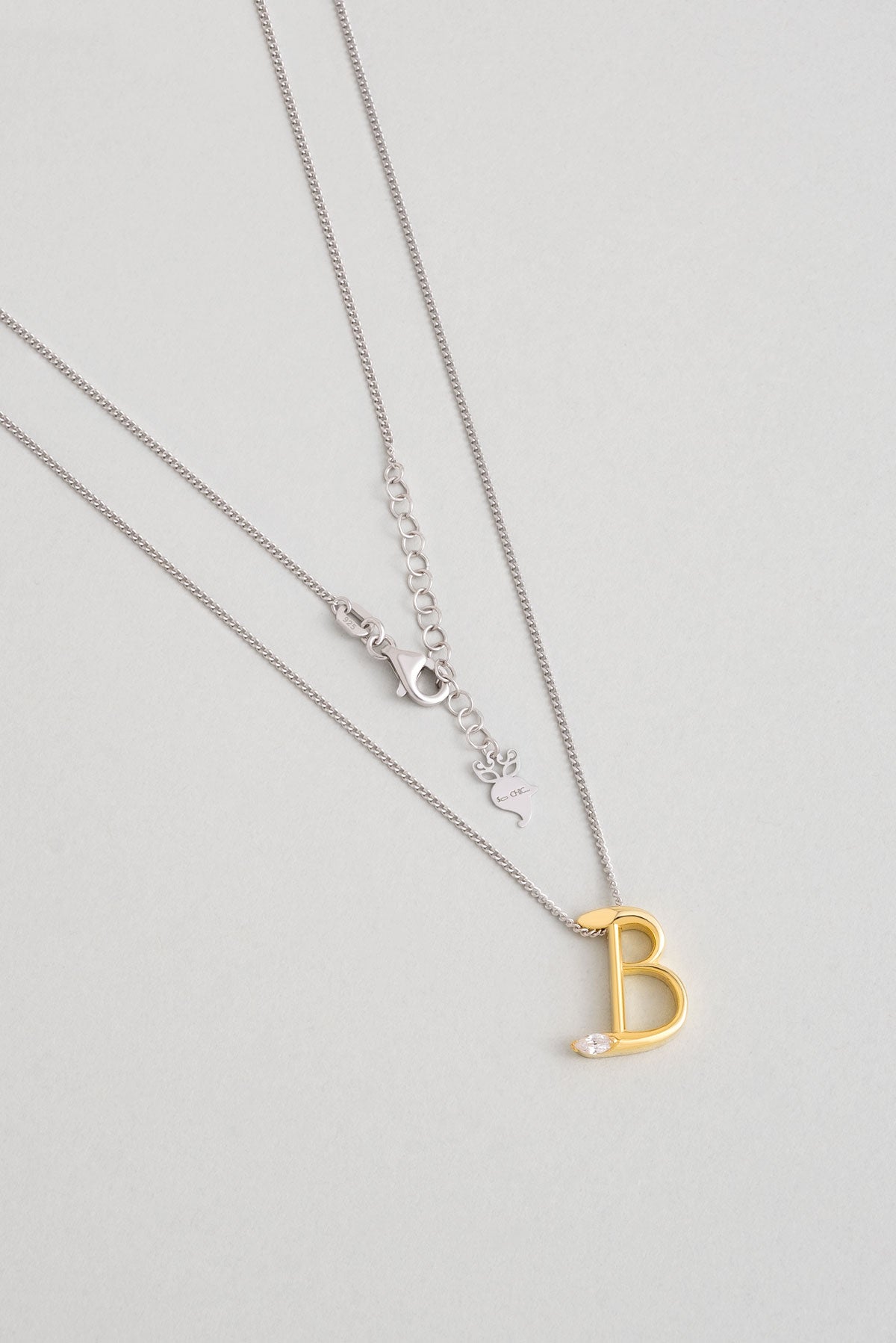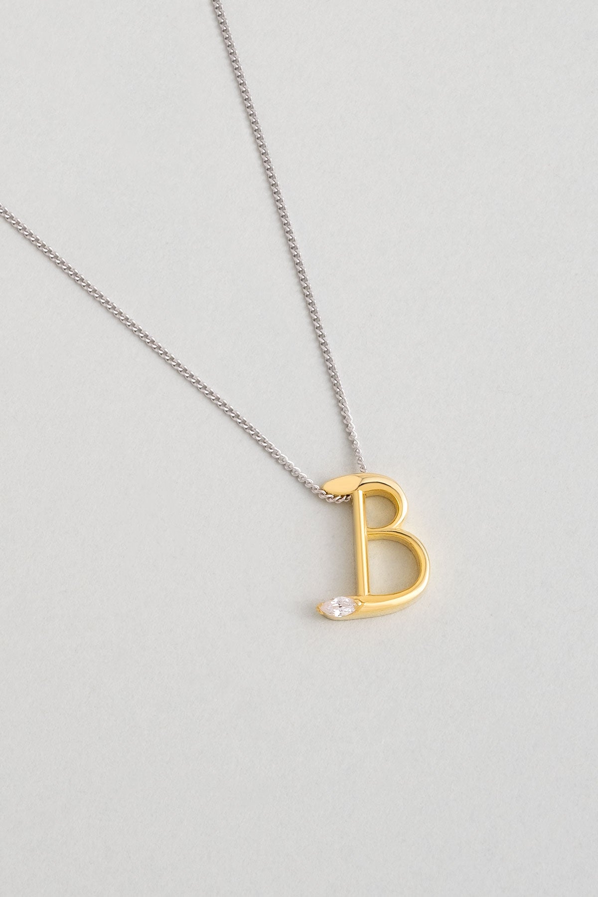 Asimetrik B Harfi 18 Ayar Beyaz Ve Sarı Altın Kaplama 45 Cm Gümüş Harfli Kolye 07302010144