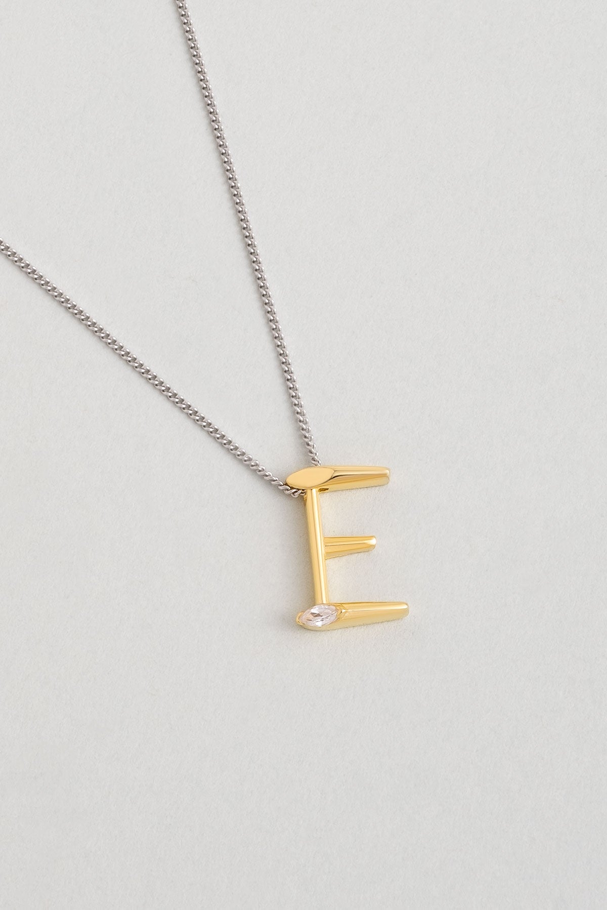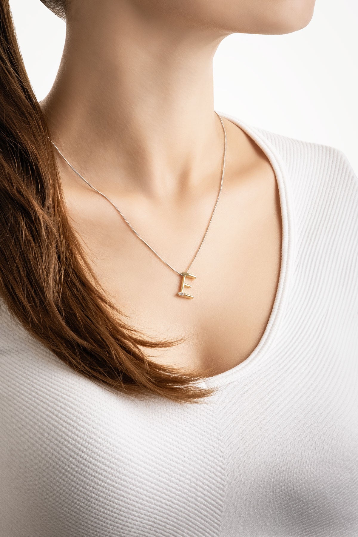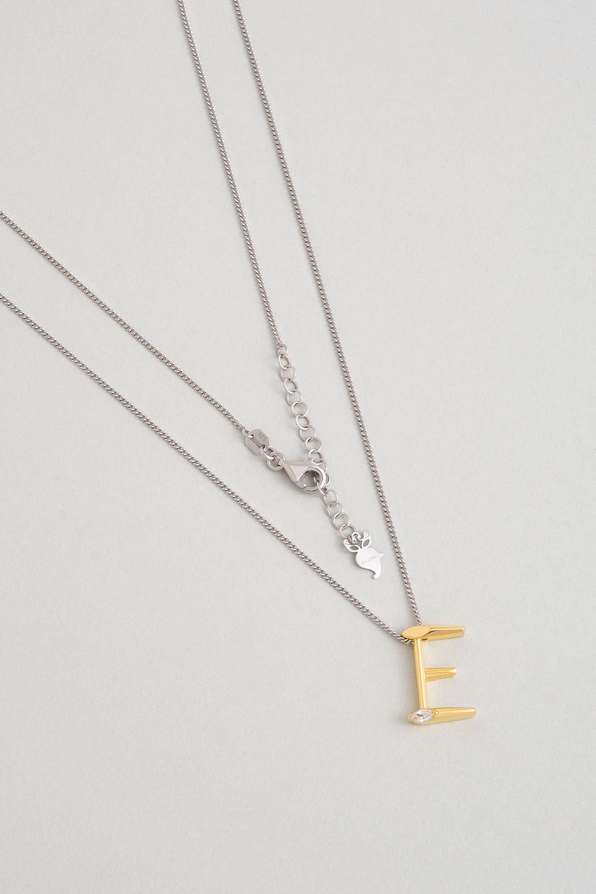 Asimetrik E Harfi 18 Ayar Beyaz Ve Sarı Altın Kaplama 45 Cm Gümüş Harfli Kolye 07302050144