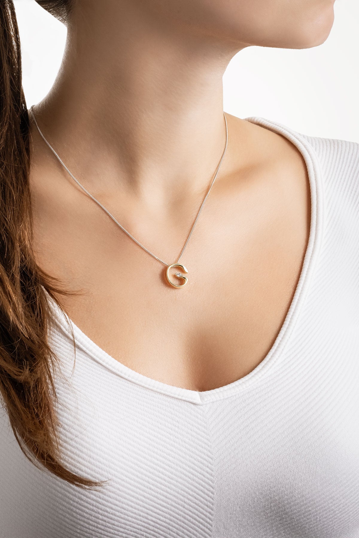 Asimetrik G Harfi 18 Ayar Beyaz Ve Sarı Altın Kaplama 45 Cm Gümüş Harfli Kolye 07302070144