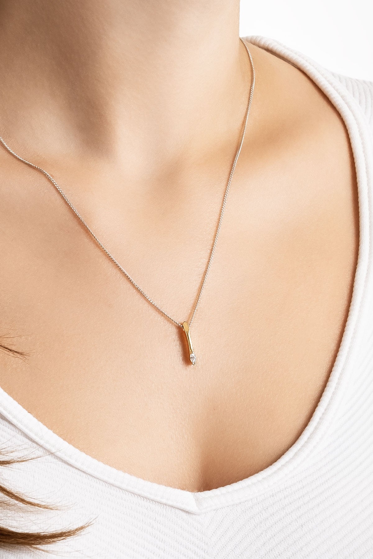 Asimetrik I Harfi 18 Ayar Beyaz Ve Sarı Altın Kaplama 45 Cm Gümüş Harfli Kolye 07302090144