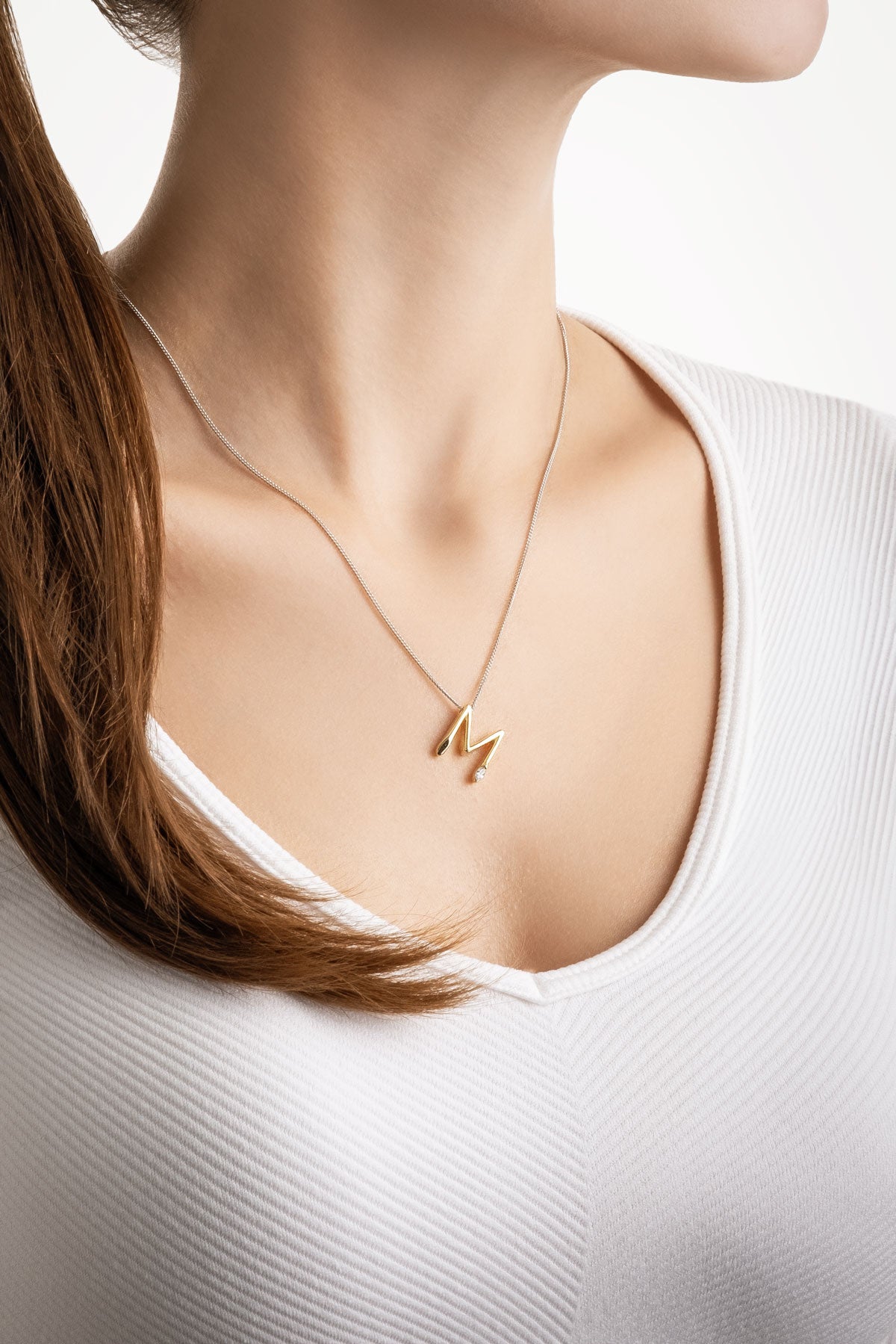 Asimetrik M Harfi 18 Ayar Beyaz Ve Sarı Altın Kaplama 45 Cm Gümüş Harfli Kolye 07302140144