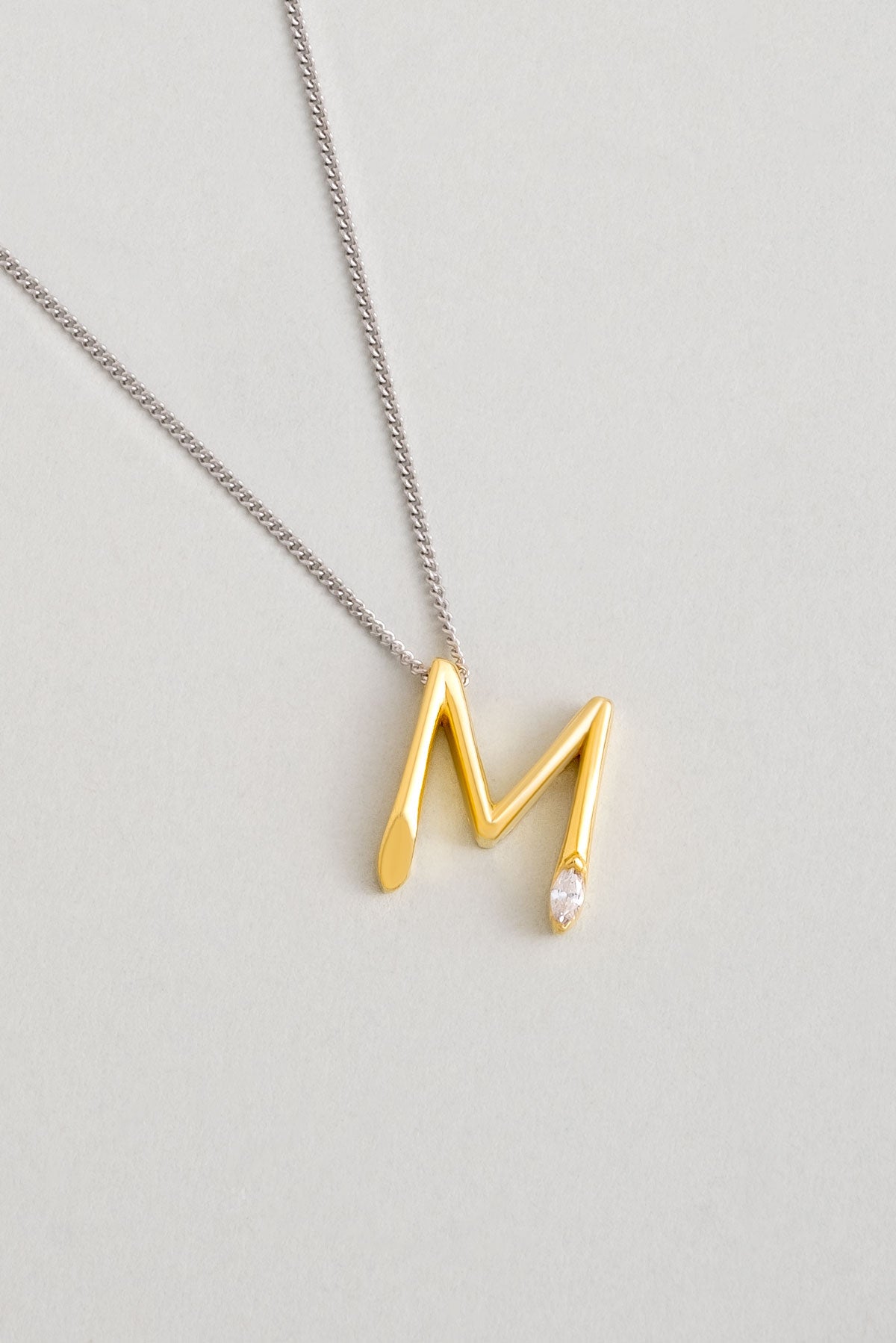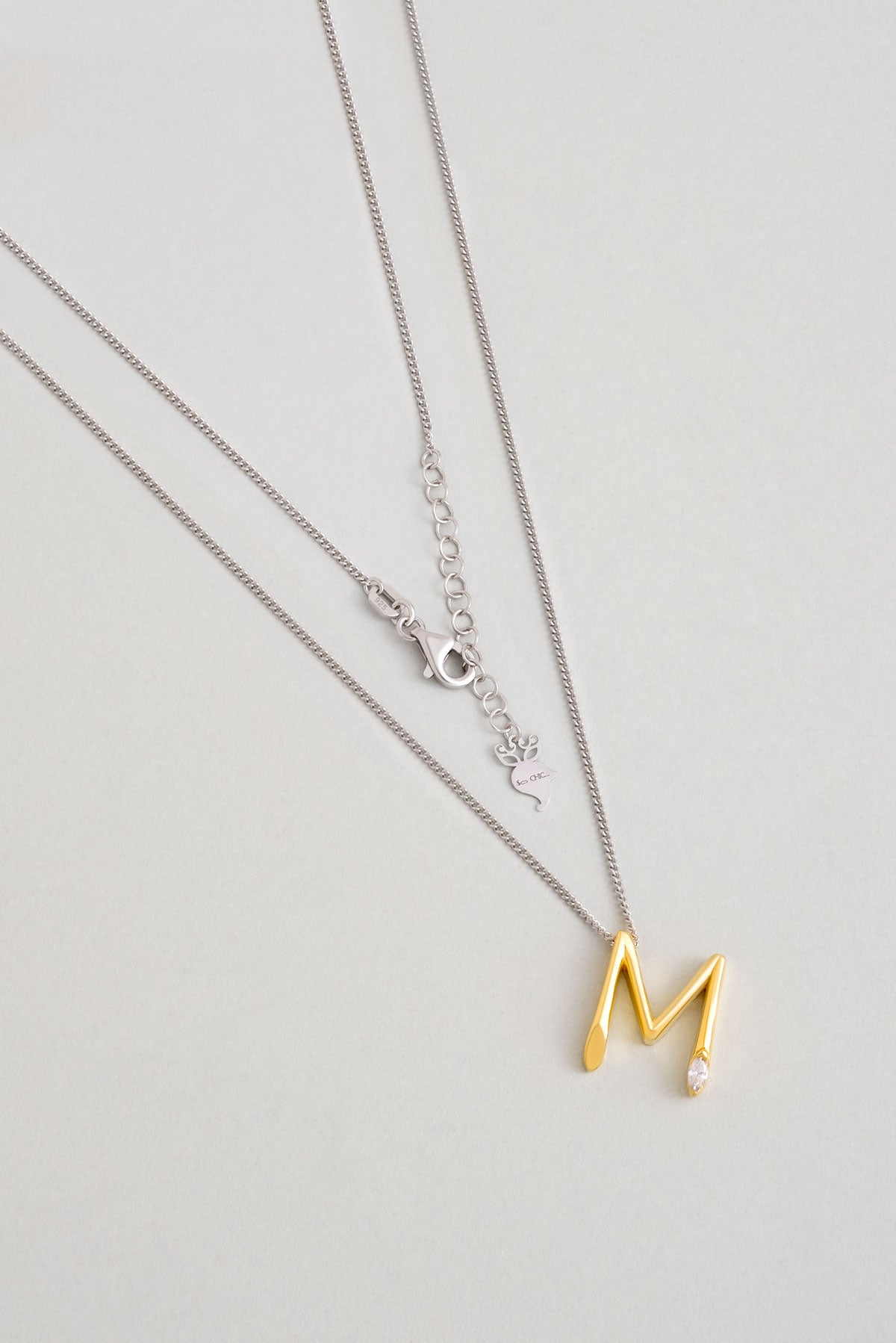 Asimetrik M Harfi 18 Ayar Beyaz Ve Sarı Altın Kaplama 45 Cm Gümüş Harfli Kolye 07302140144