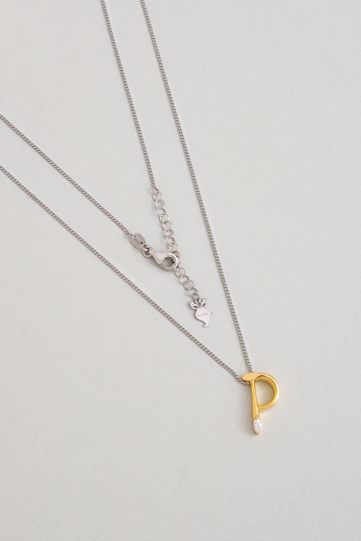 Asimetrik P Harfi 18 Ayar Beyaz Ve Sarı Altın Kaplama 45 Cm Gümüş Harfli Kolye 07302180144