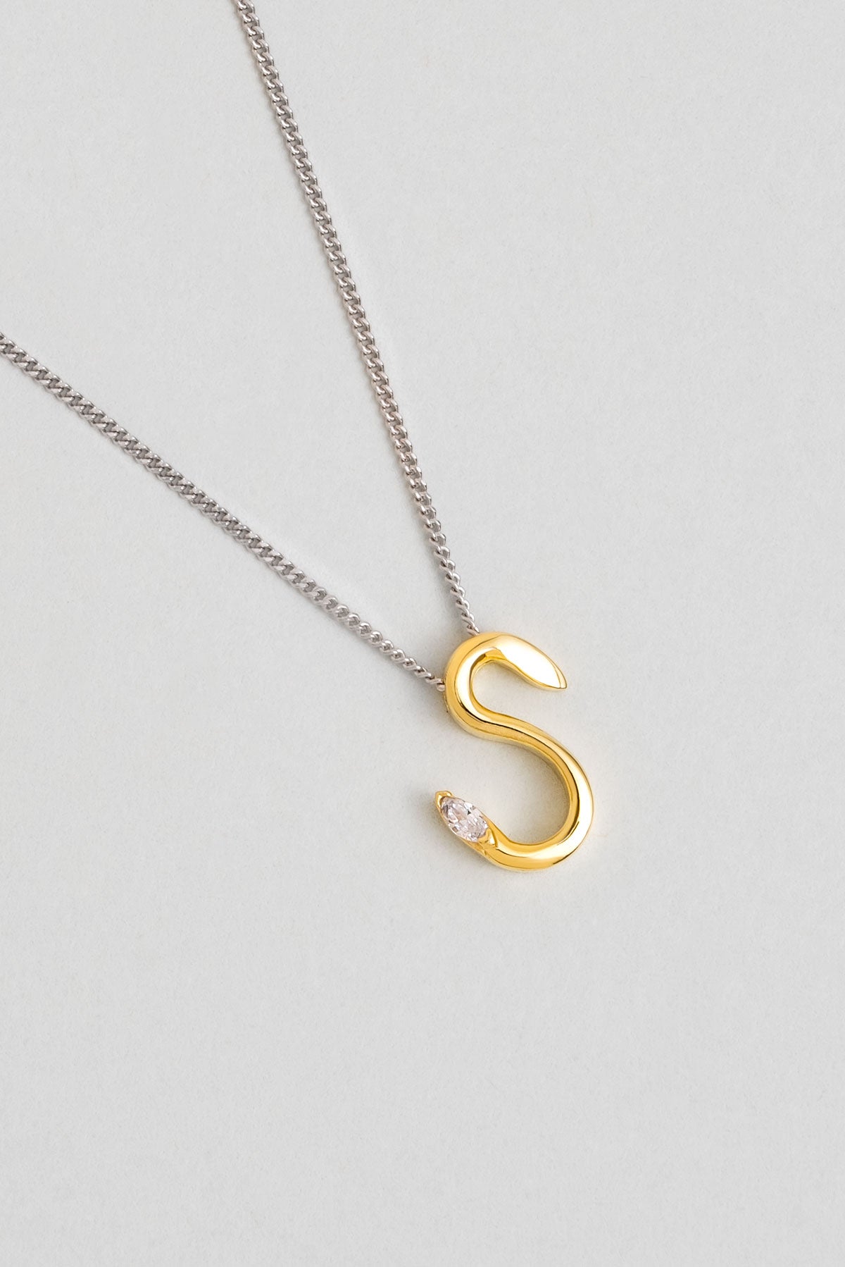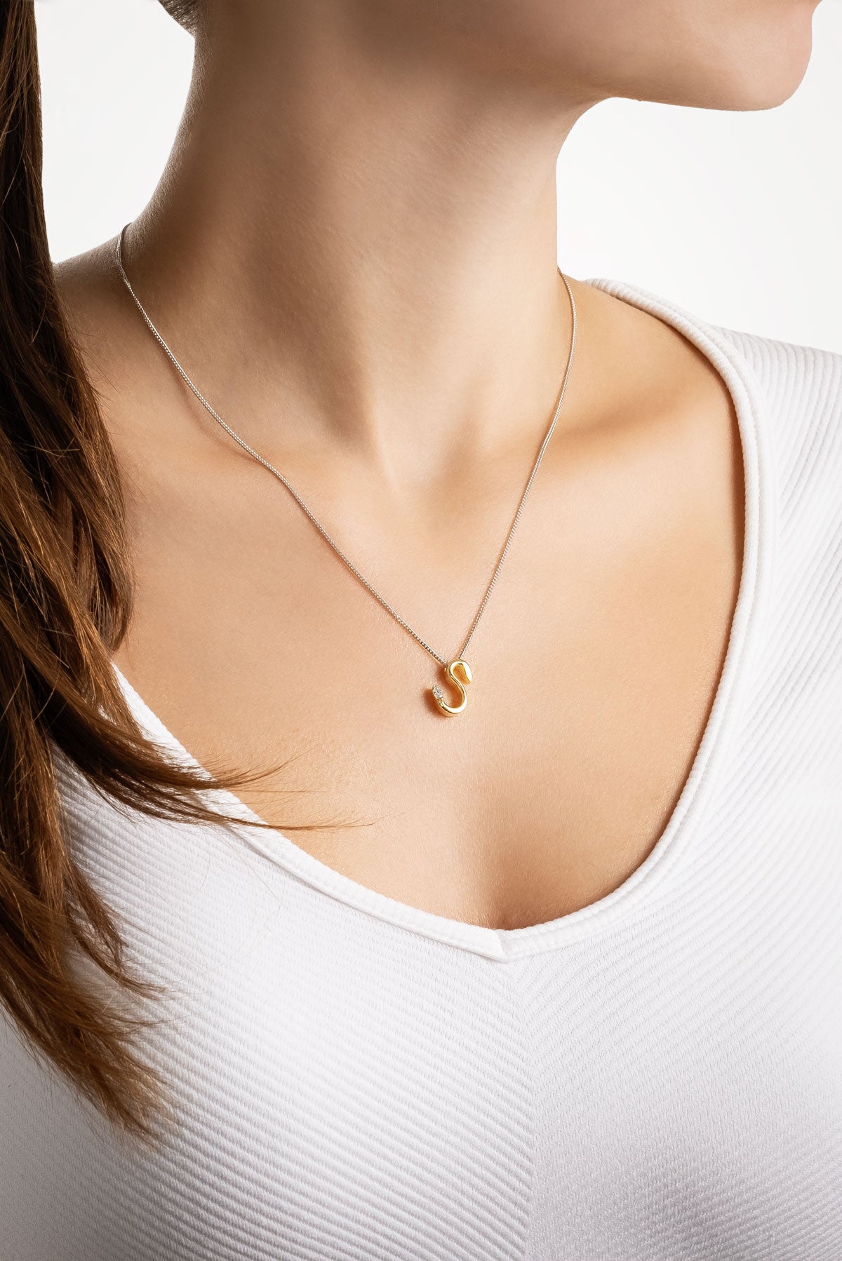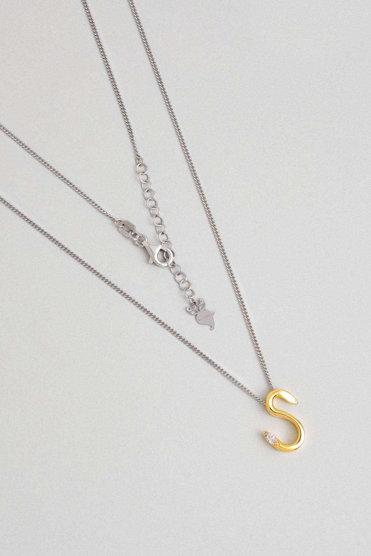 Asimetrik S Harfi 18 Ayar Beyaz Ve Sarı Altın Kaplama 45 Cm Gümüş Harfli Kolye 07302200144