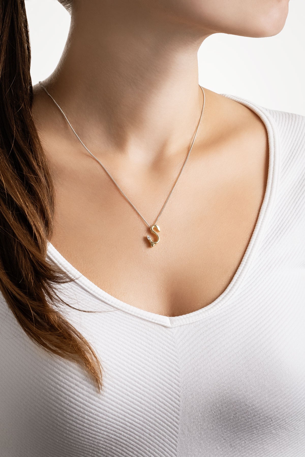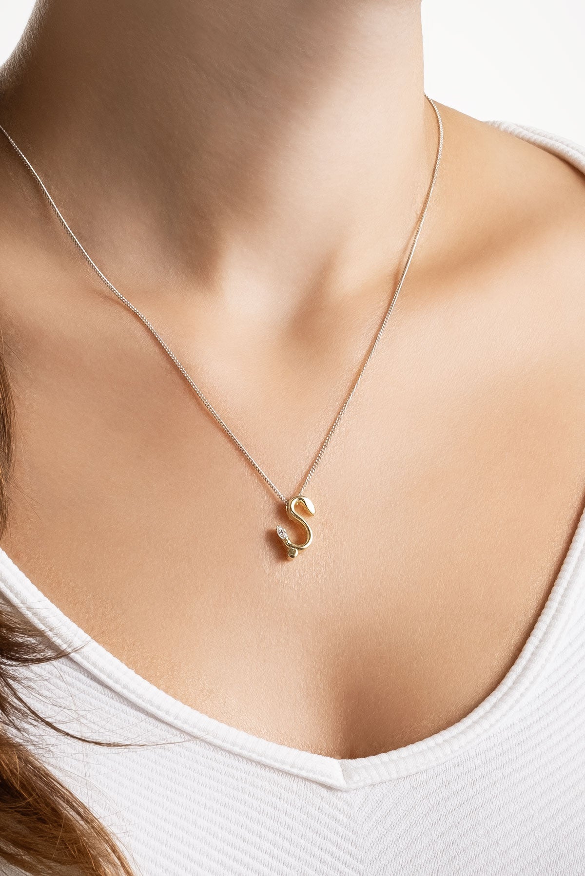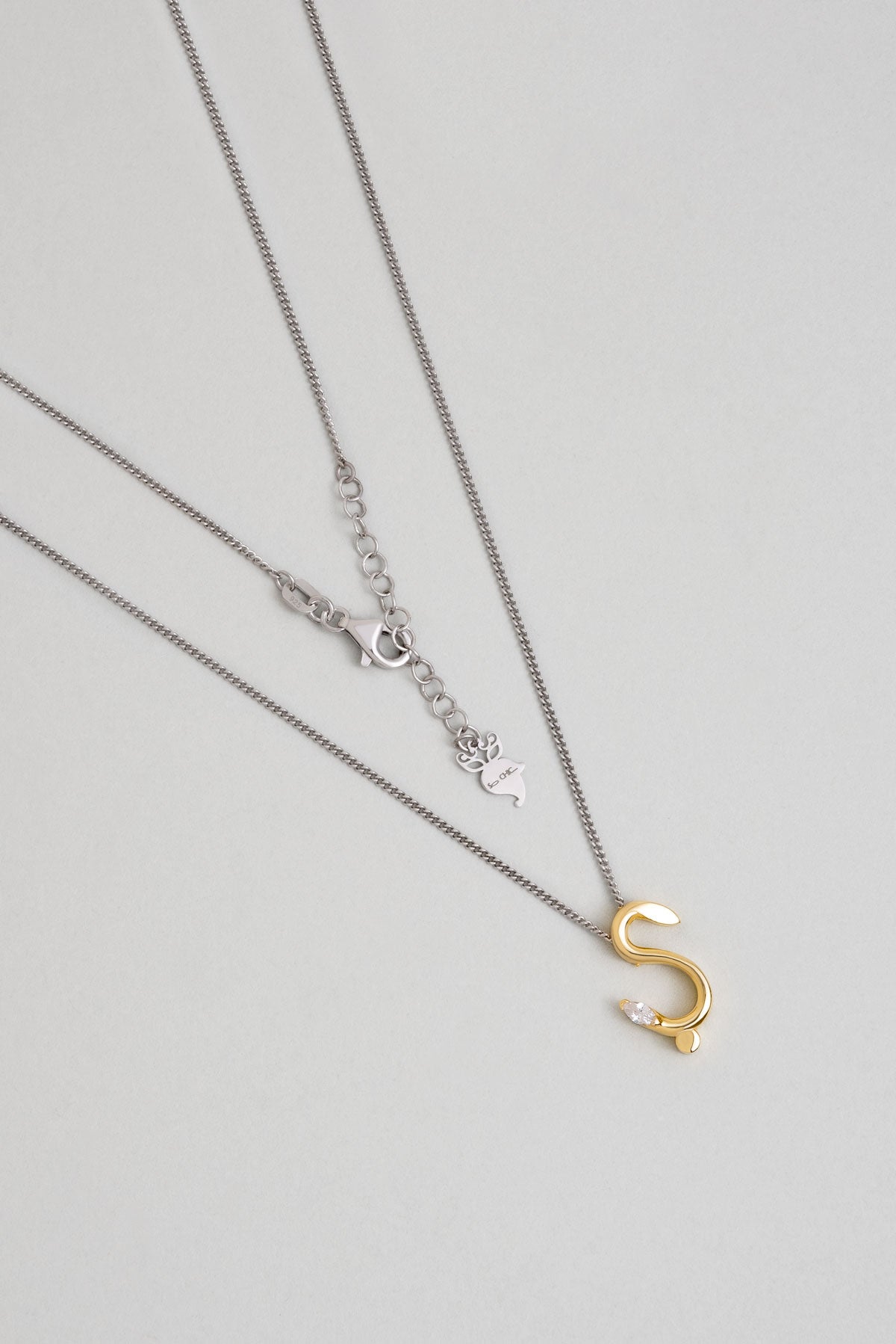 Asimetrik Ş Harfi 18 Ayar Beyaz Ve Sarı Altın Kaplama 45 Cm Gümüş Harfli Kolye 07302210144