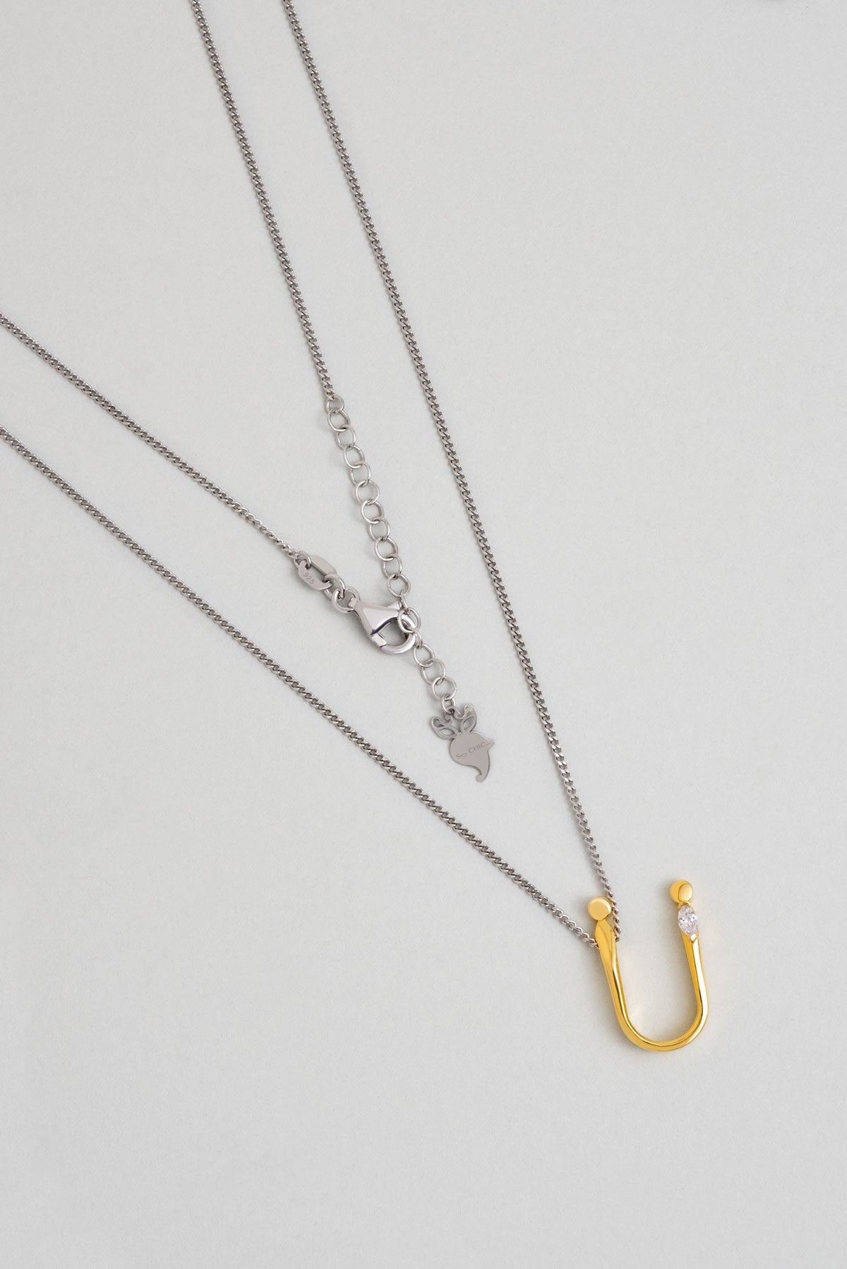 Asimetrik Ü Harfi 18 Ayar Beyaz Ve Sarı Altın Kaplama 45 Cm Gümüş Harfli Kolye 07302240144