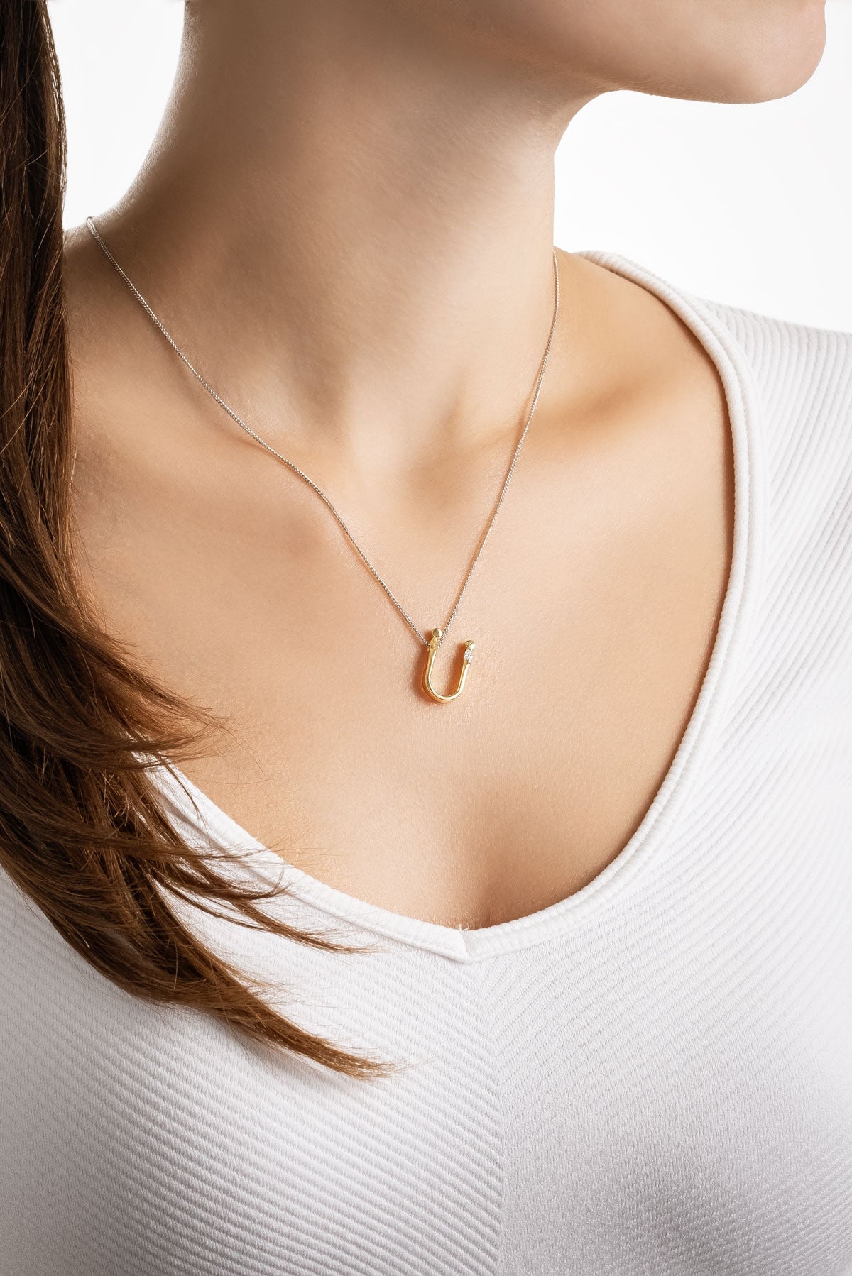 Asimetrik Ü Harfi 18 Ayar Beyaz Ve Sarı Altın Kaplama 45 Cm Gümüş Harfli Kolye 07302240144