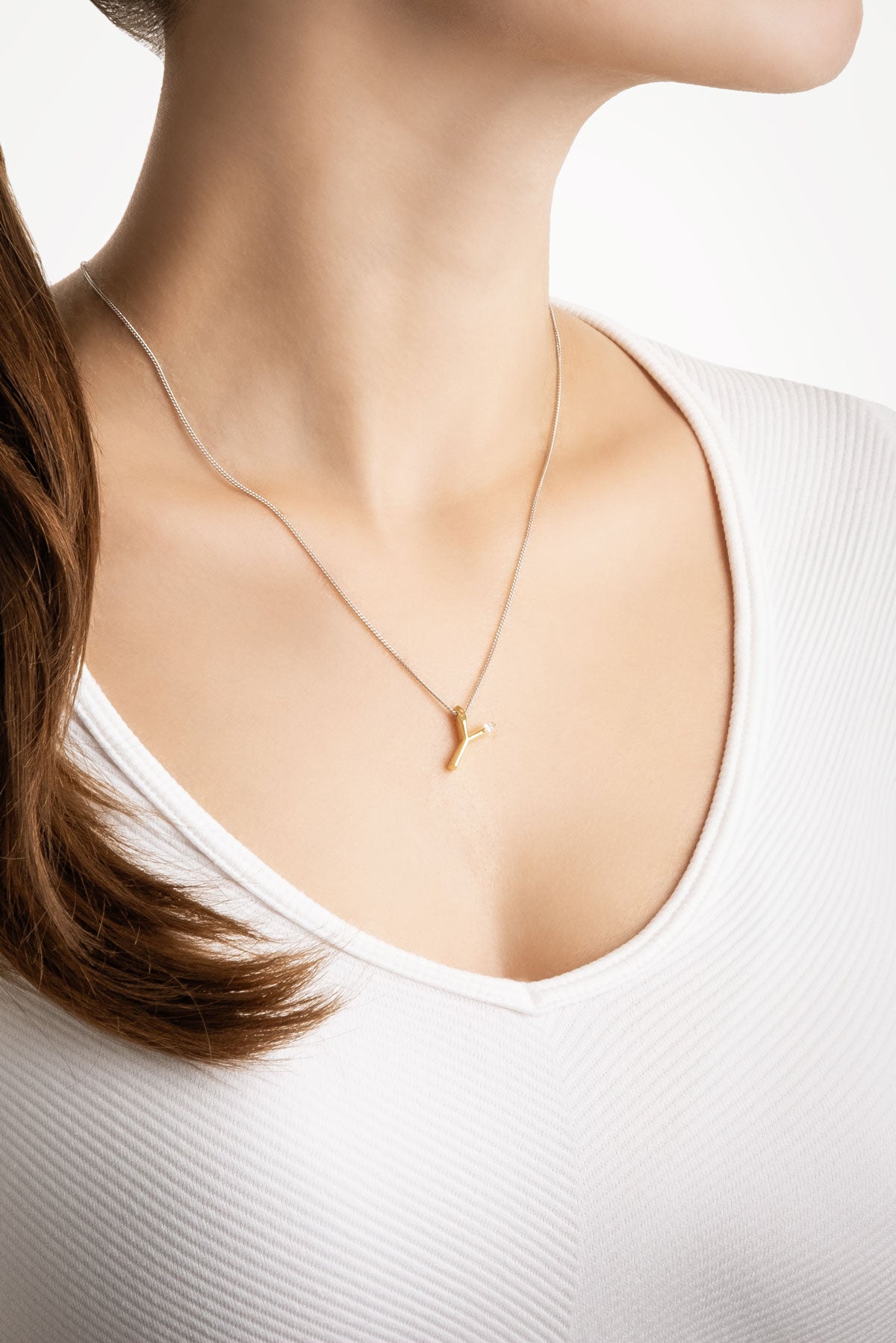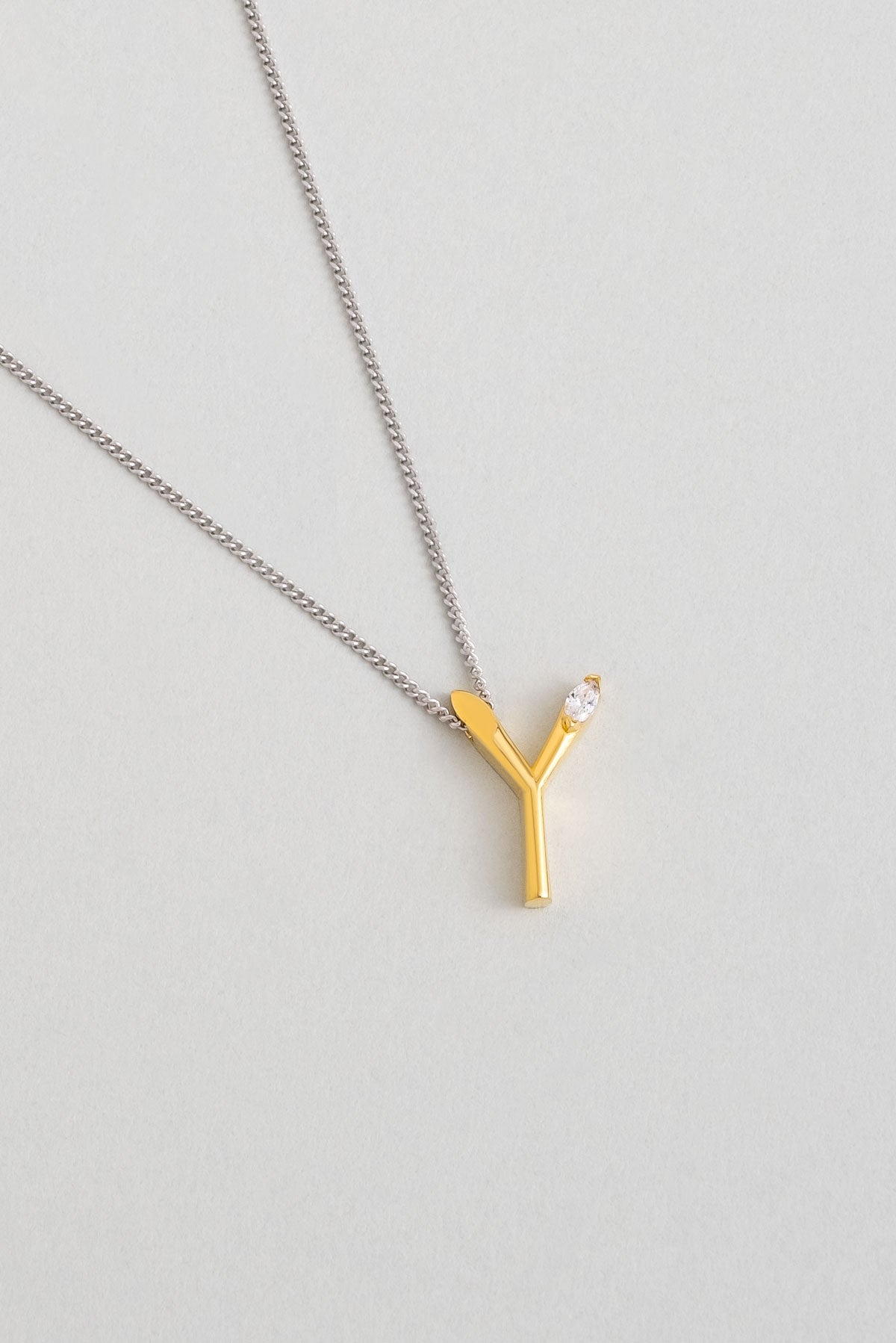 Asimetrik Y Harfi 18 Ayar Beyaz Ve Sarı Altın Kaplama 45 Cm Gümüş Harfli Kolye 07302260144