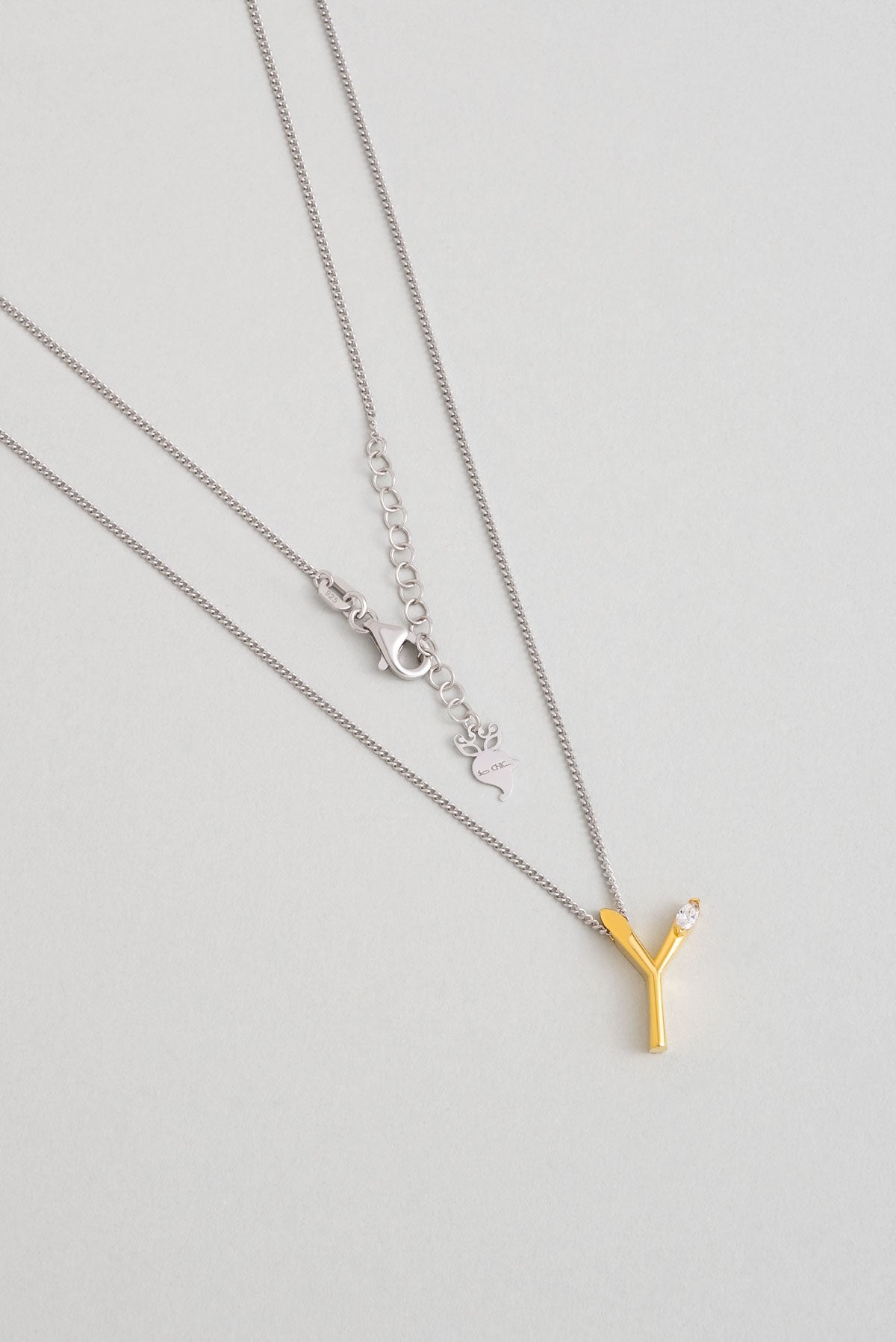 Asimetrik Y Harfi 18 Ayar Beyaz Ve Sarı Altın Kaplama 45 Cm Gümüş Harfli Kolye 07302260144
