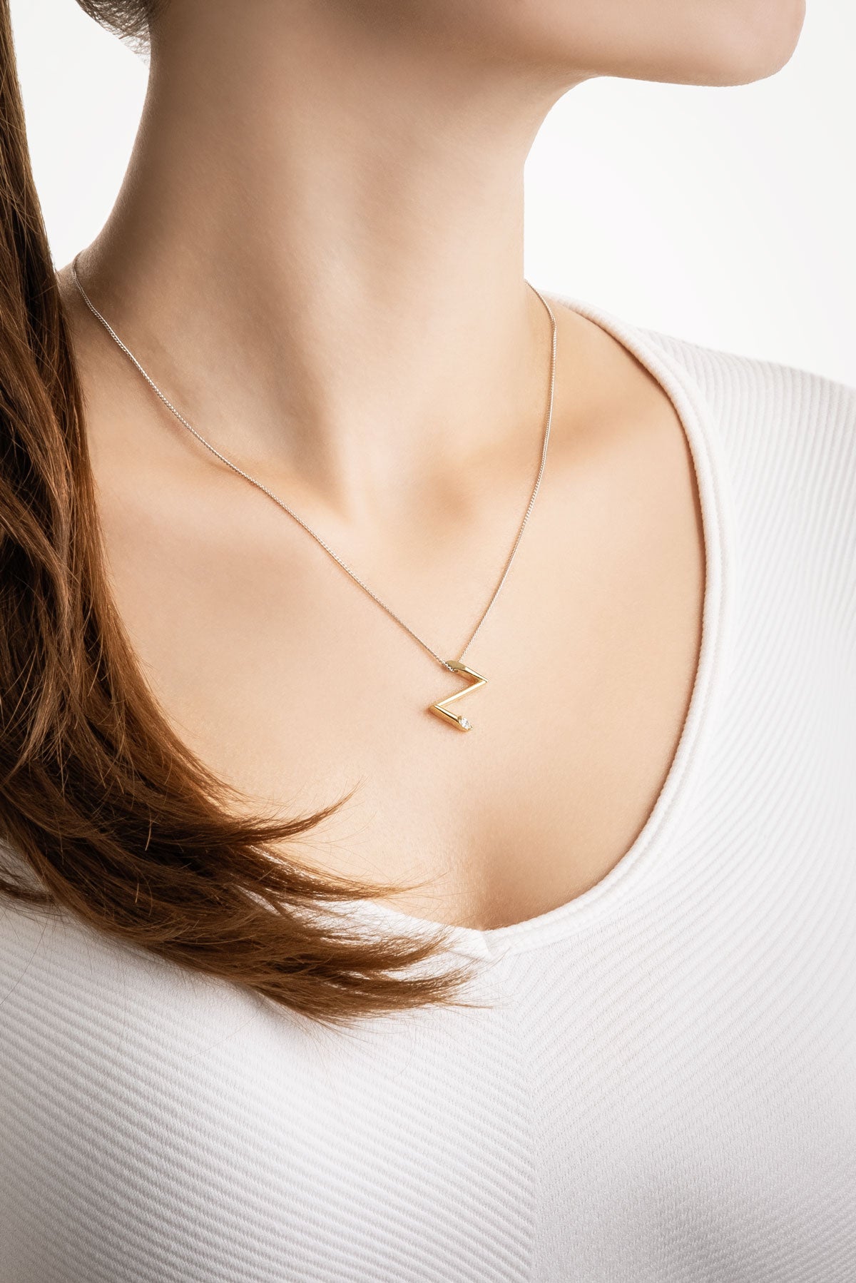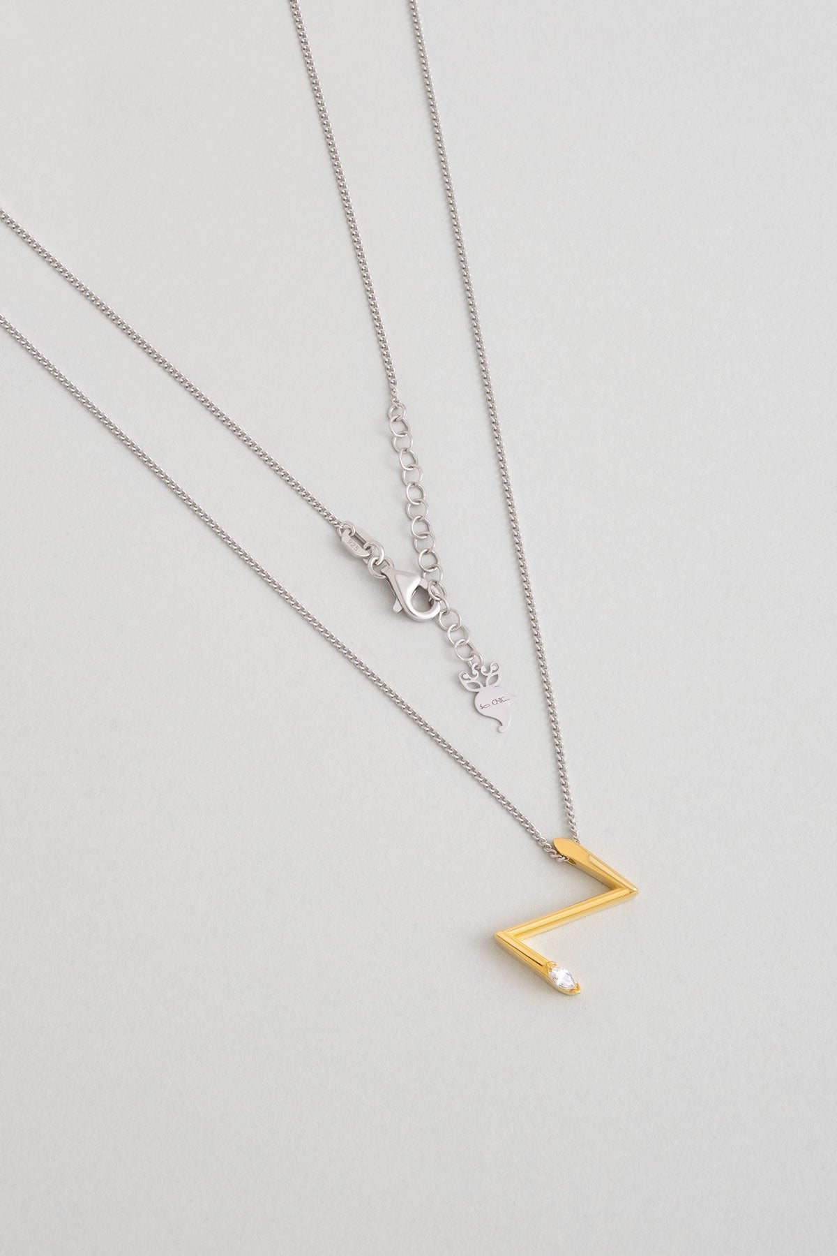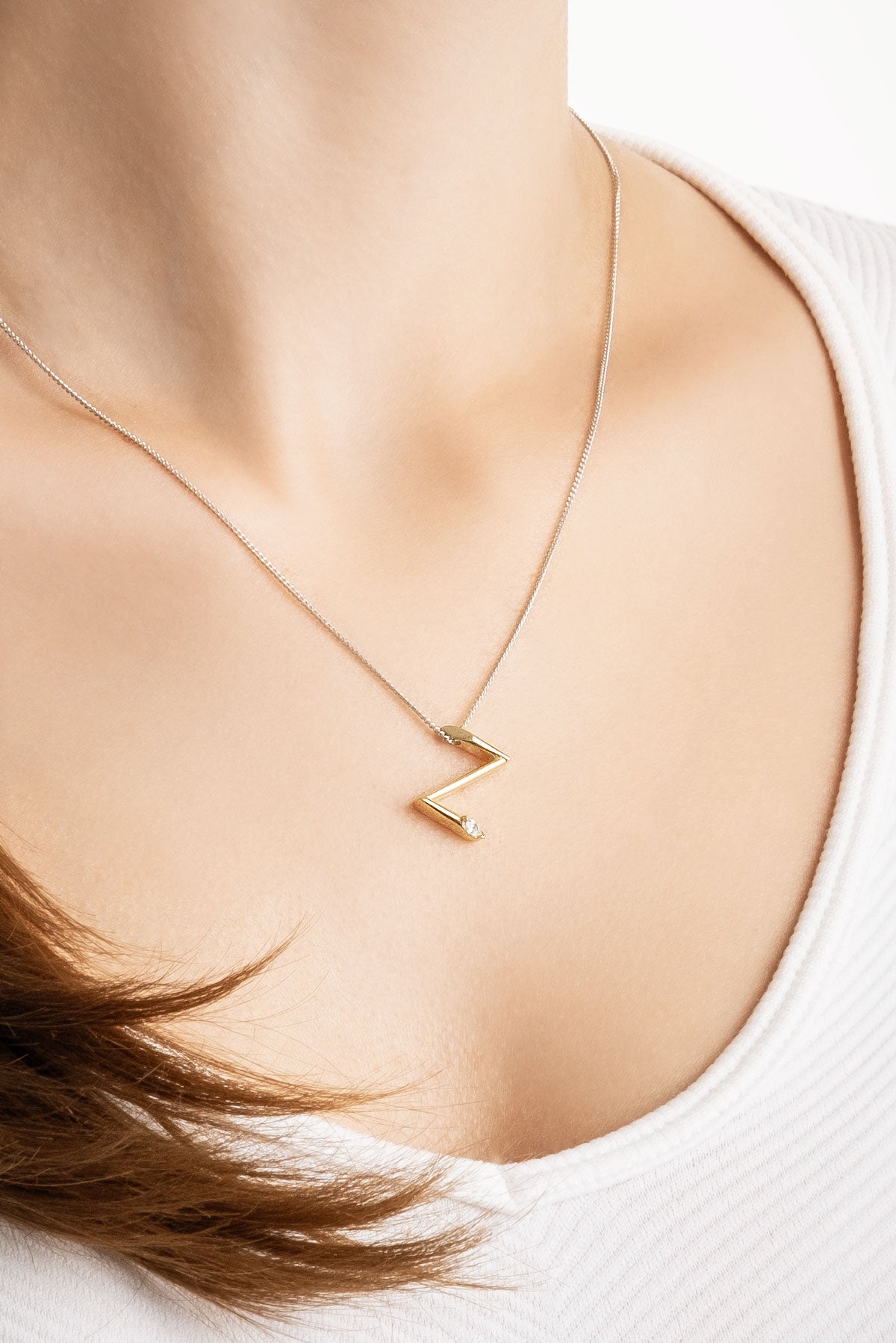 Asimetrik Z Harfi 18 Ayar Beyaz Ve Sarı Altın Kaplama 45 Cm Gümüş Harfli Kolye 07302270144