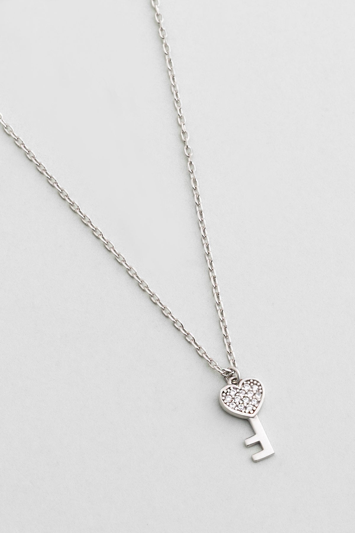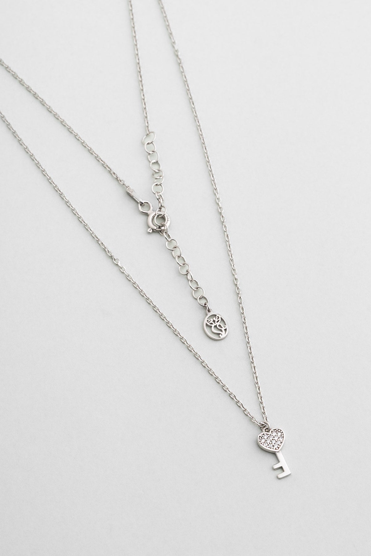 Aşk Anahtarı 18 Ayar Beyaz Altın Kaplama 45 Cm Gümüş Kolye 1174640199