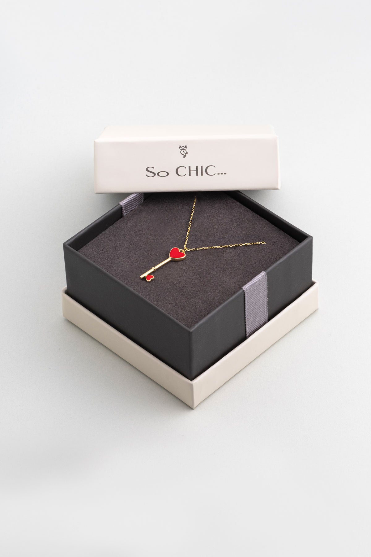 Aşk Anahtarı 18 Ayar Sarı Altın Kaplama 45 Cm Gümüş Kolye 5169560844