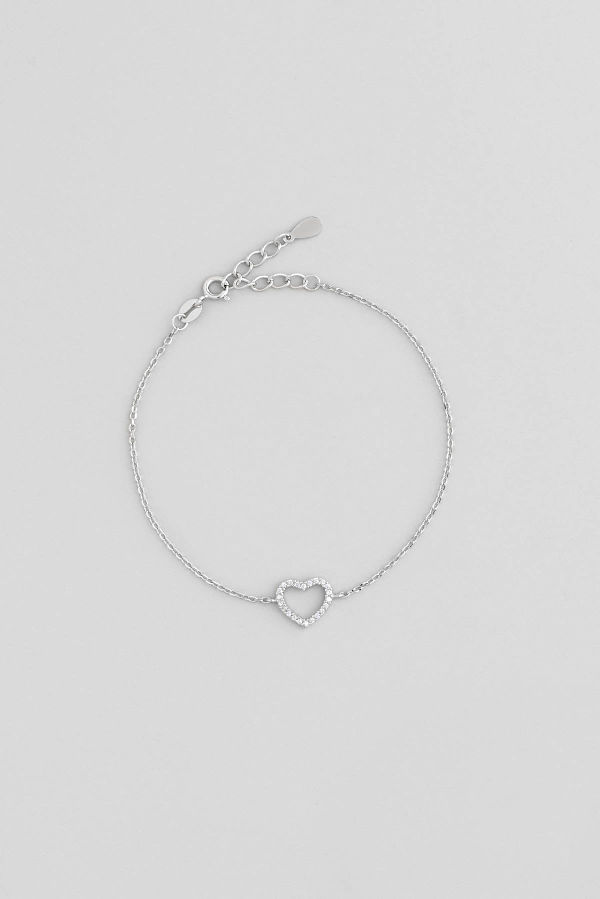 Aşk Kalbi 18 Ayar Beyaz Altın Kaplama 20 Cm Gümüş Minimal Bileklik 5124740199