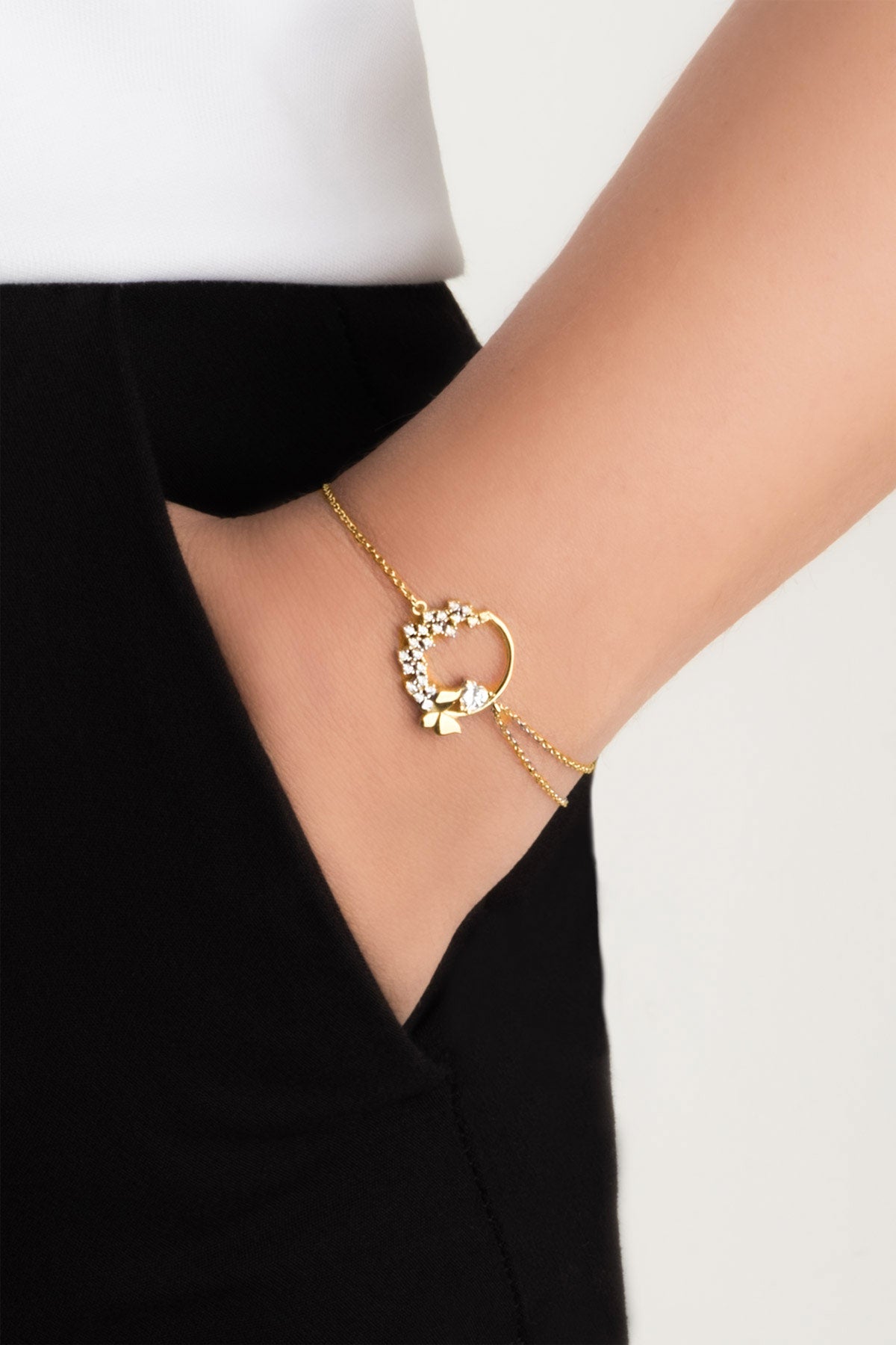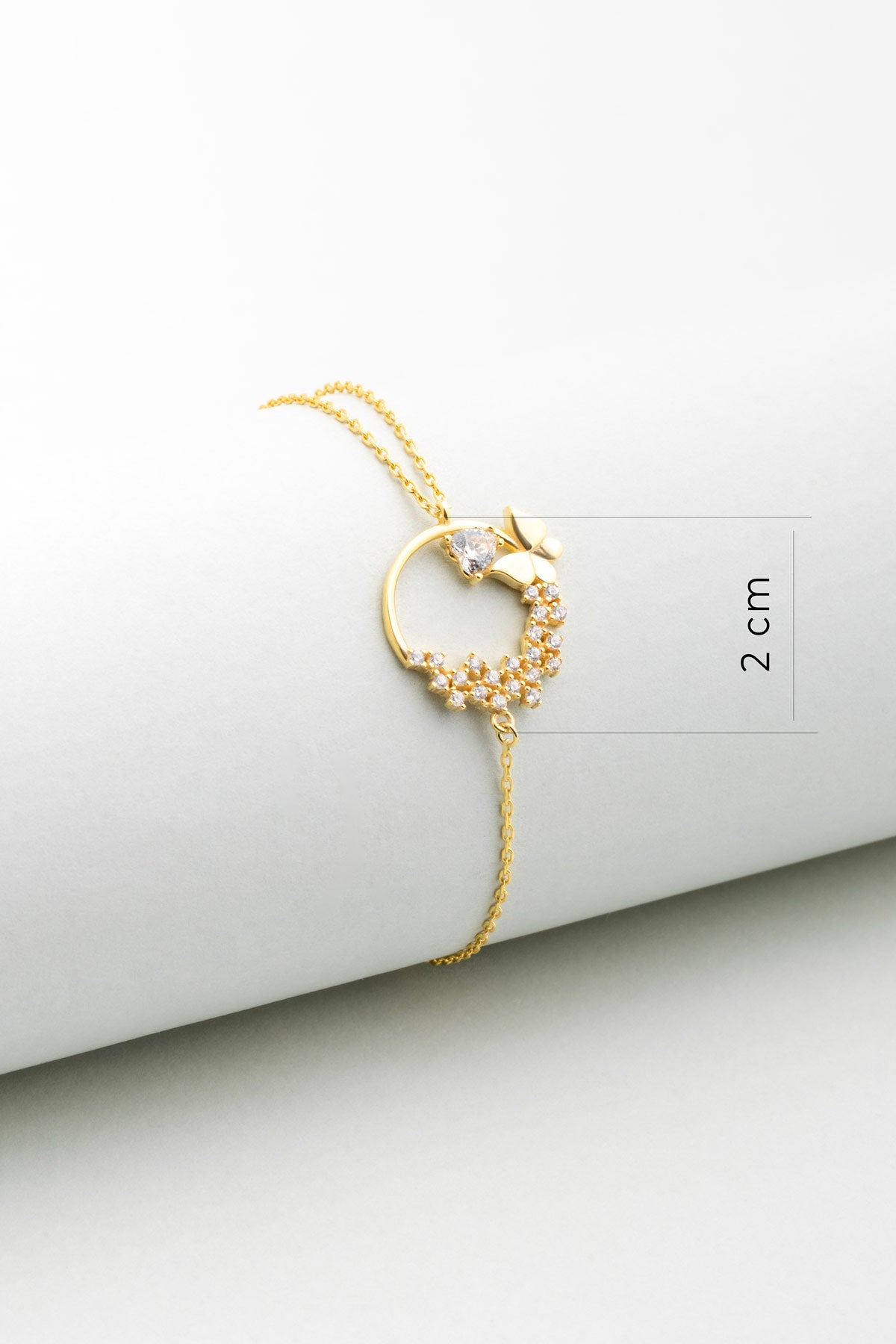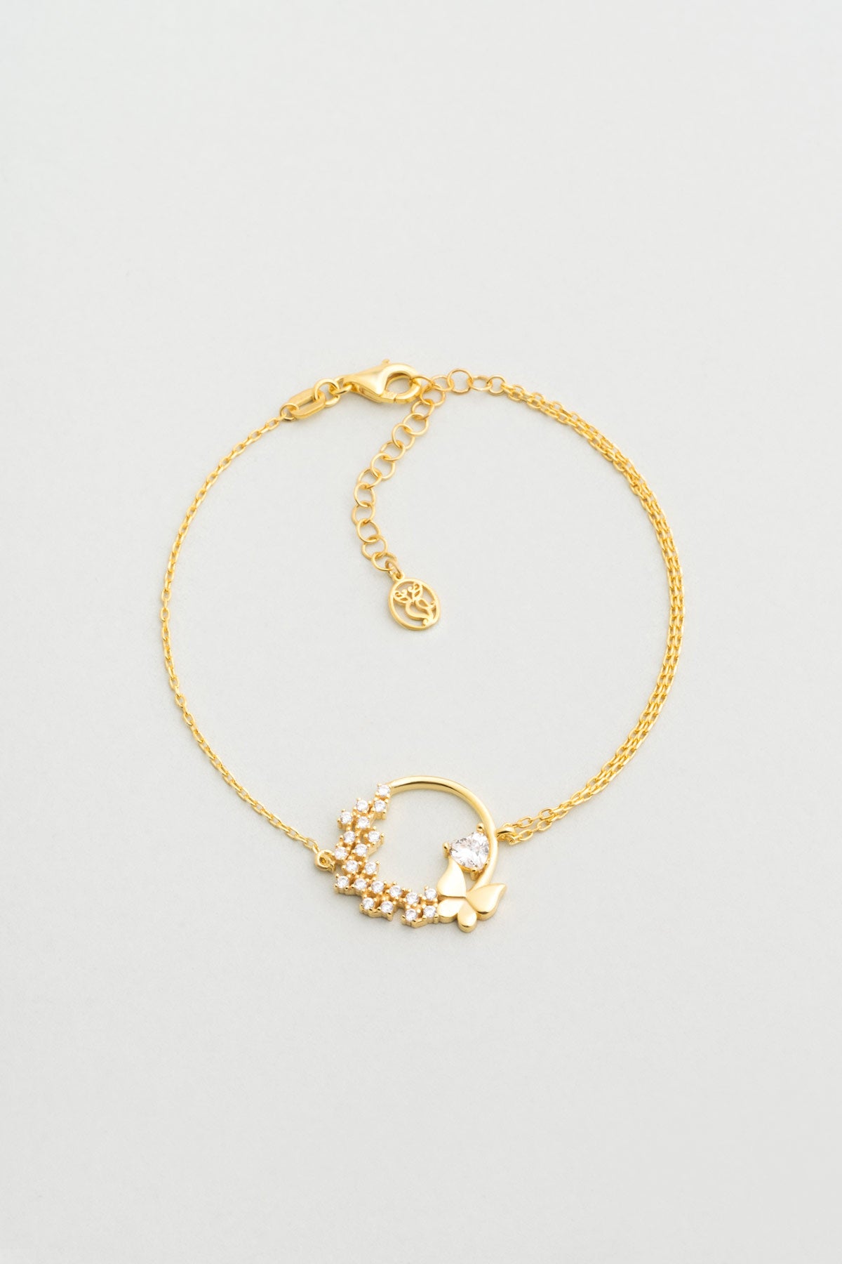 Aşk Kelebeği 18 Ayar Sarı Altın Kaplama 20 Cm Gümüş Bileklik 07263500144