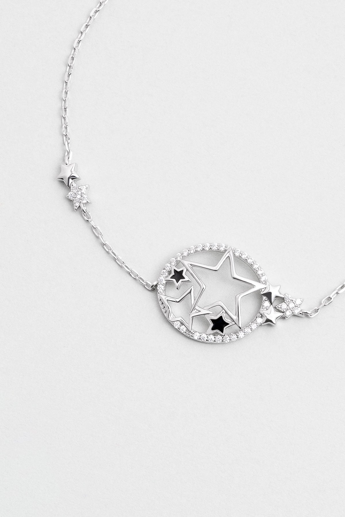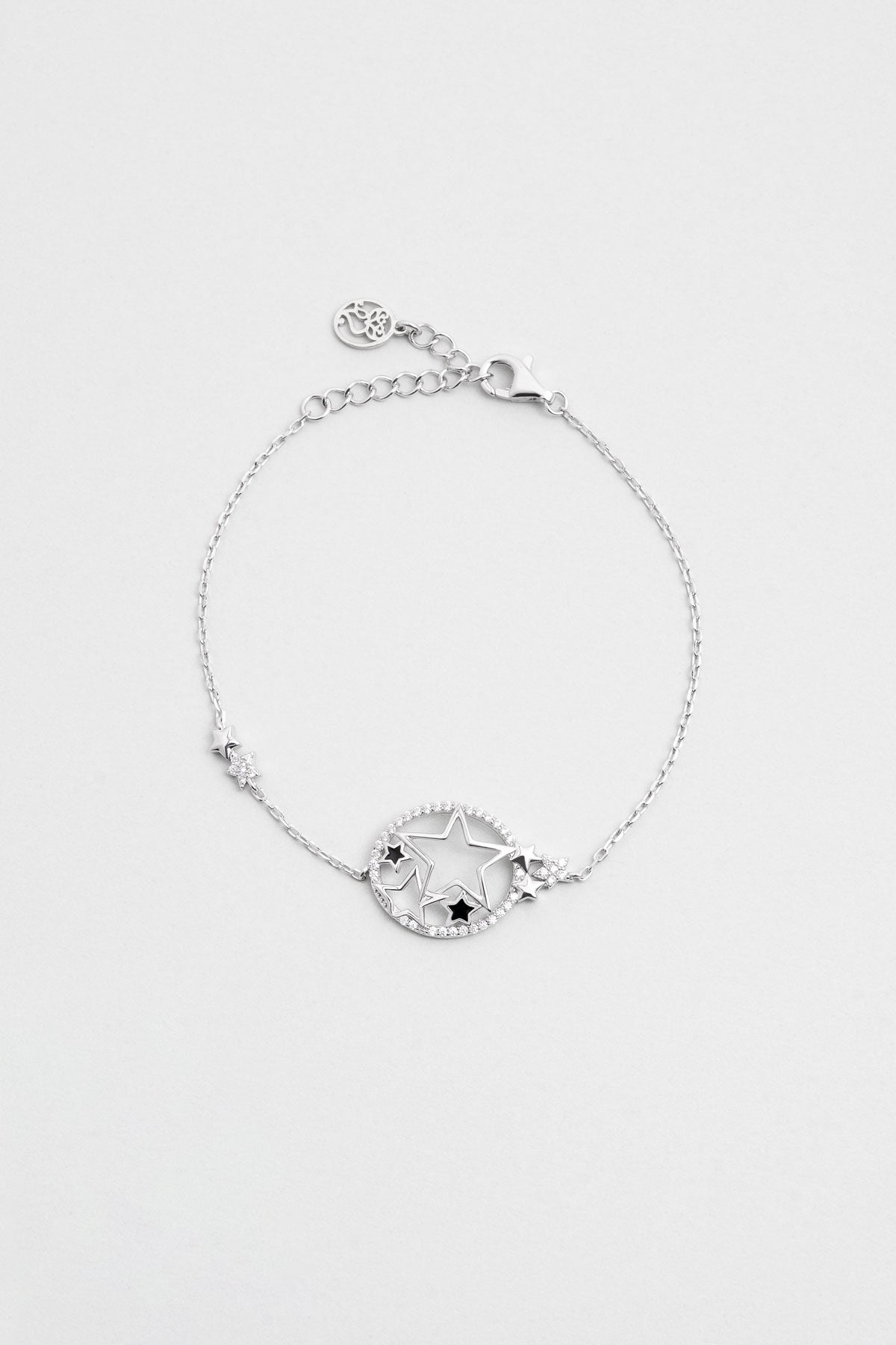 Aşk Yıldızı 18 Ayar Beyaz Altın Kaplama 19 Cm Gümüş Bileklik 07304590199