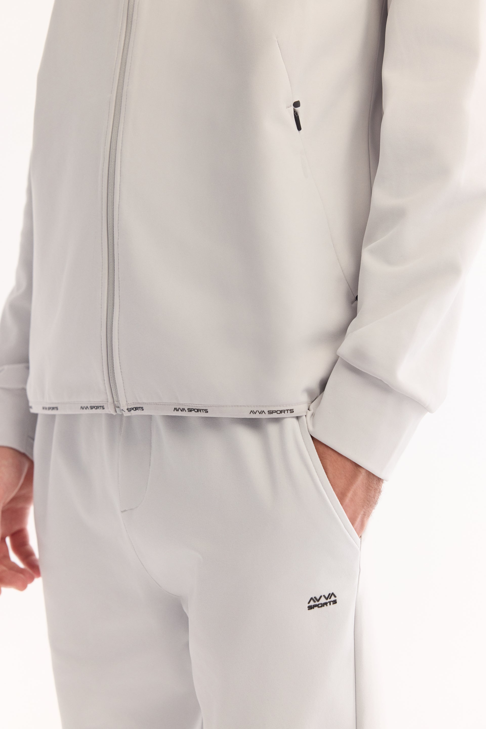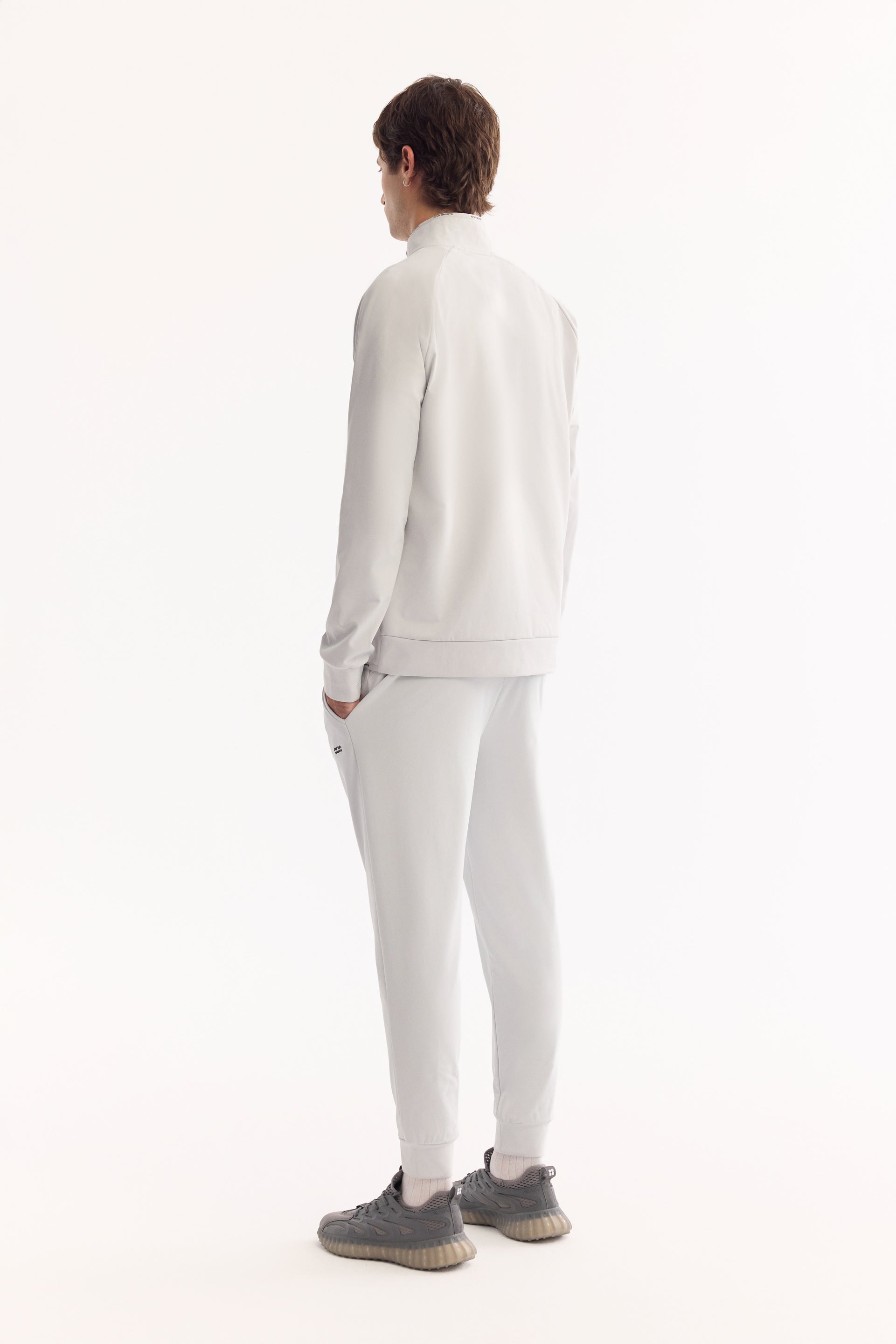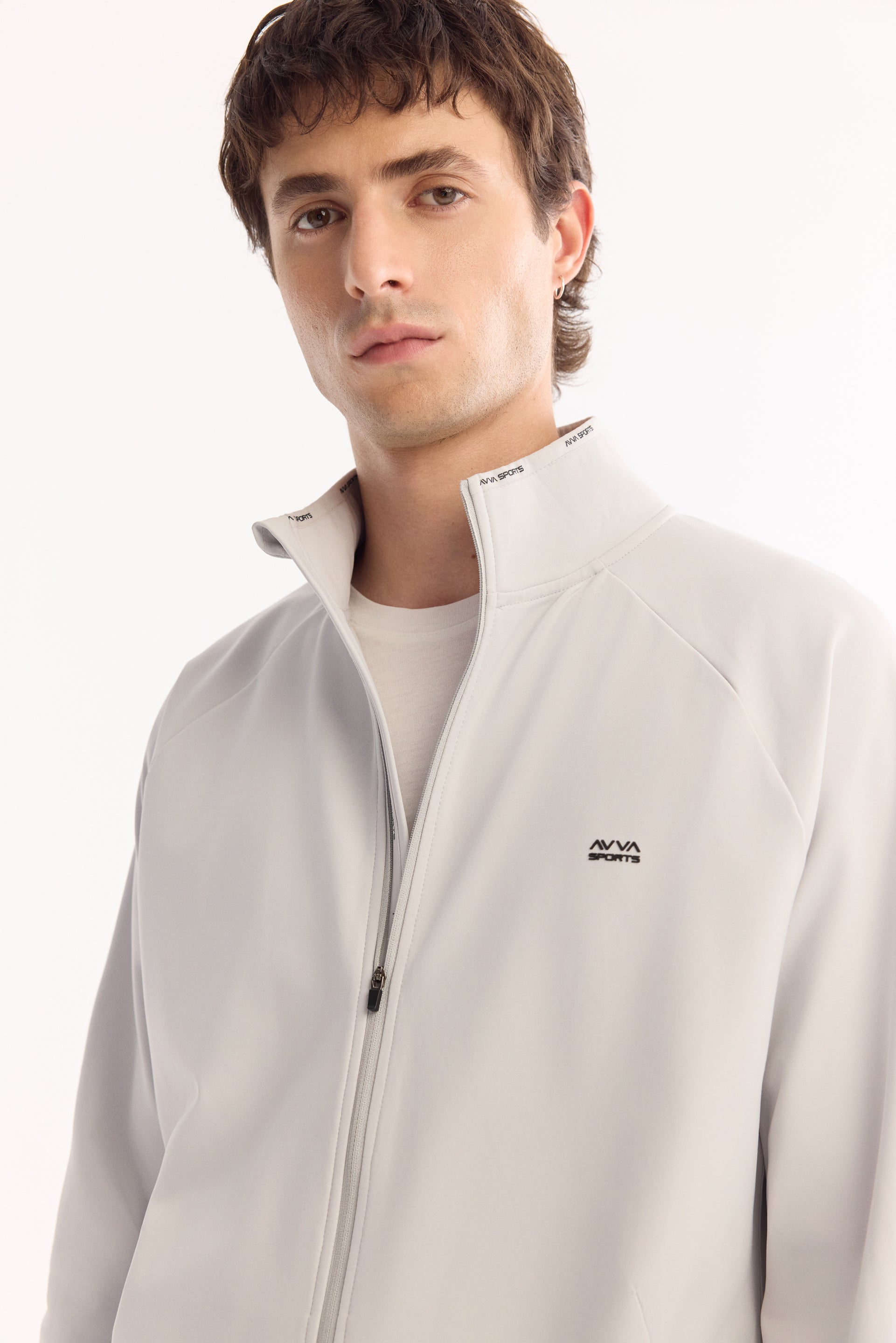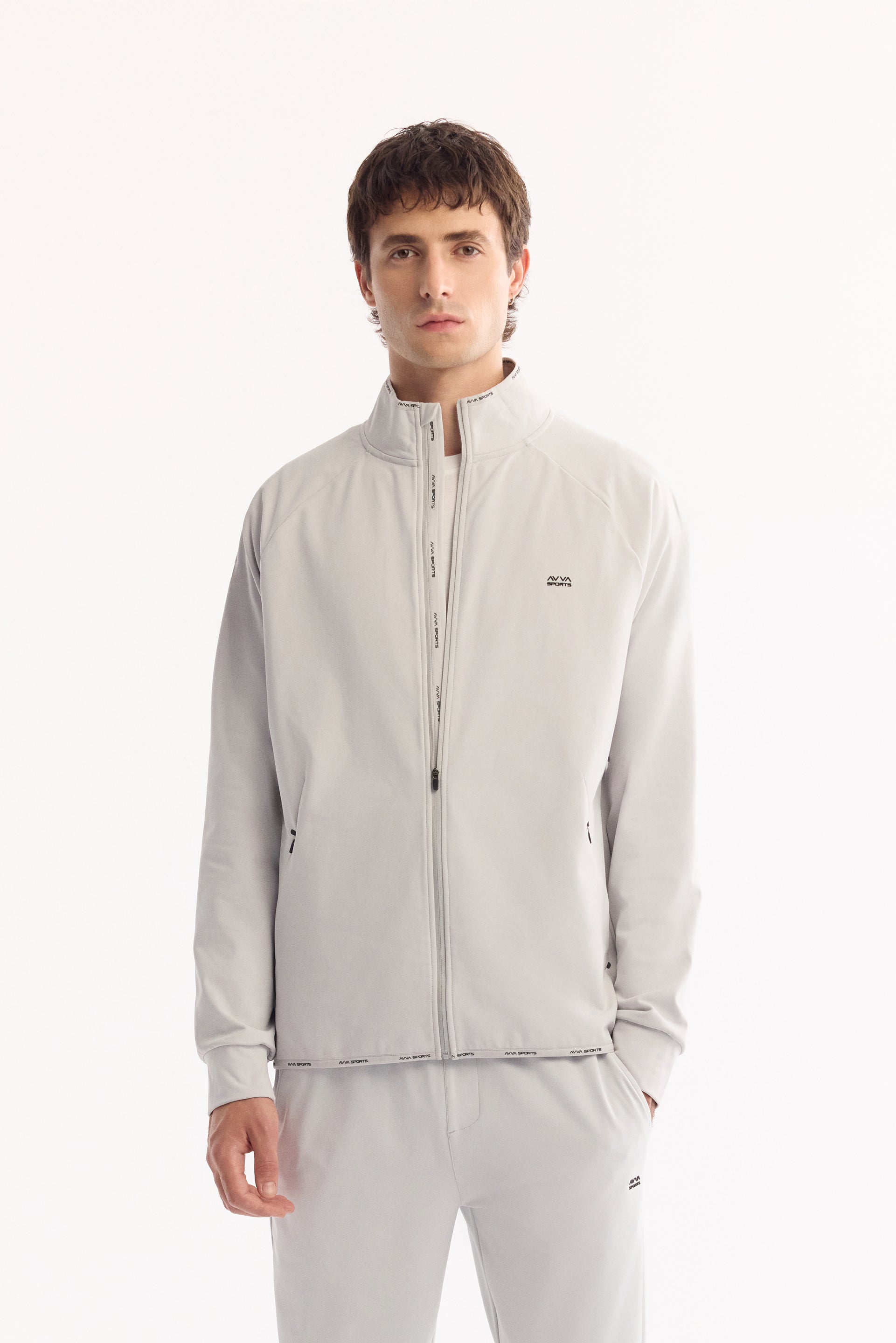 Açık Gri Dik Yaka Fermuarlı Enjeksiyon Baskılı Teknik Kumaş Hırka