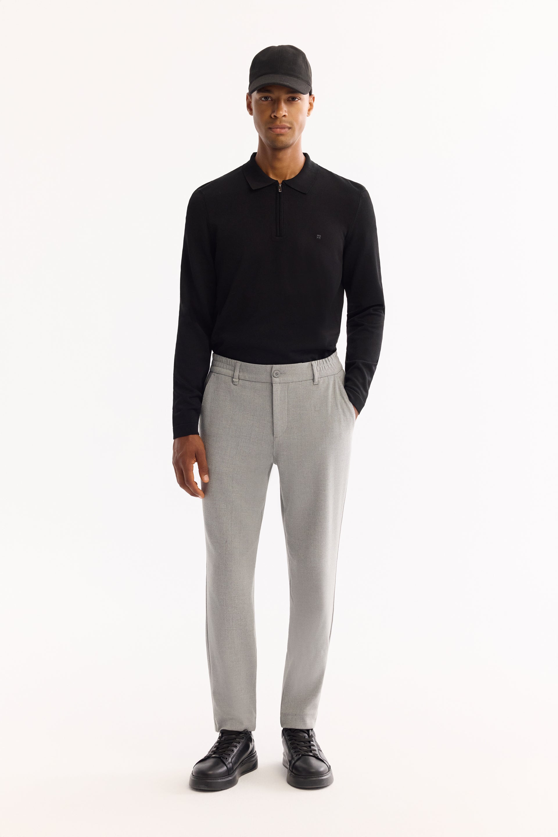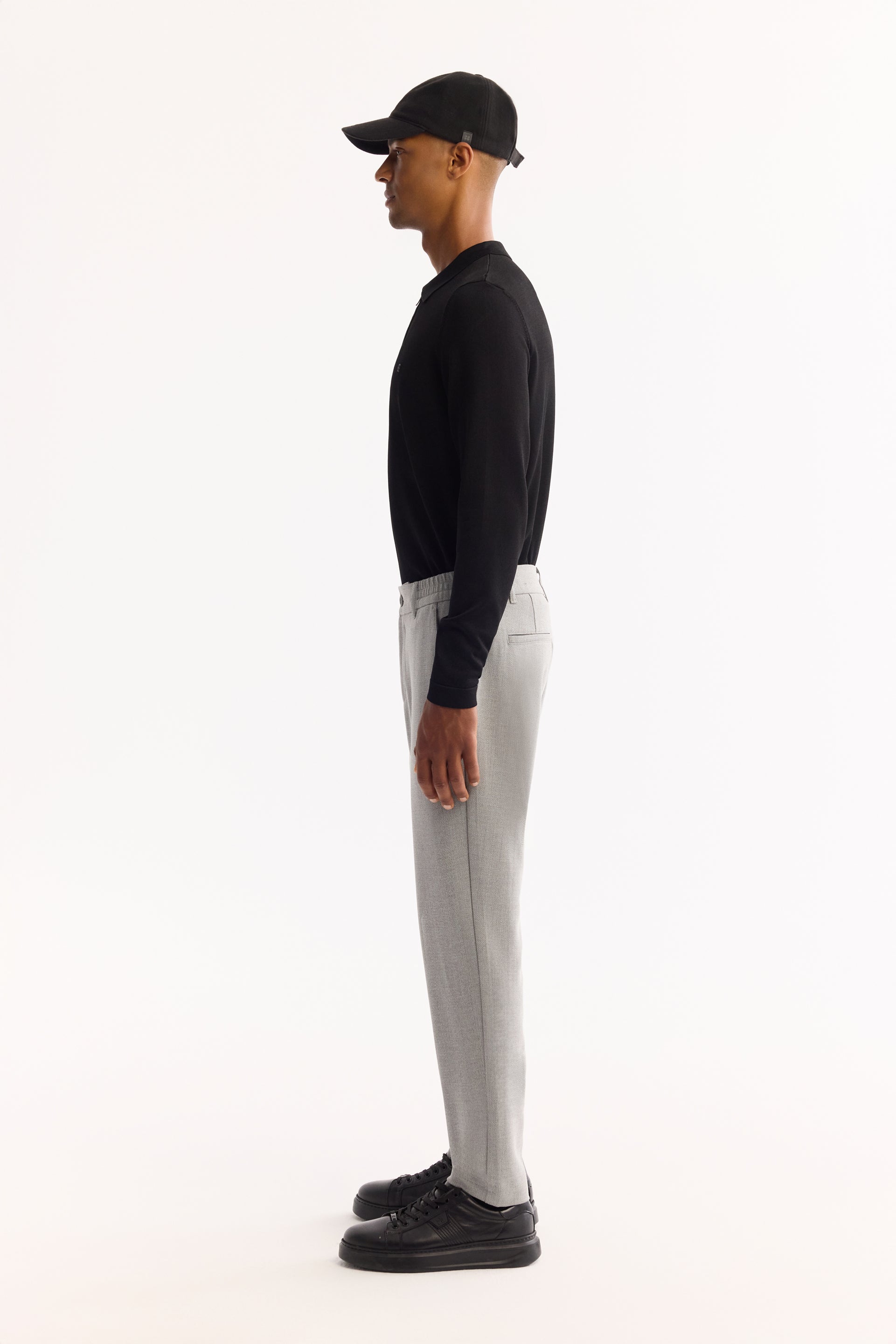 Açık Gri Dokulu Polyviskon Örme Kumaş Yandan Cepli