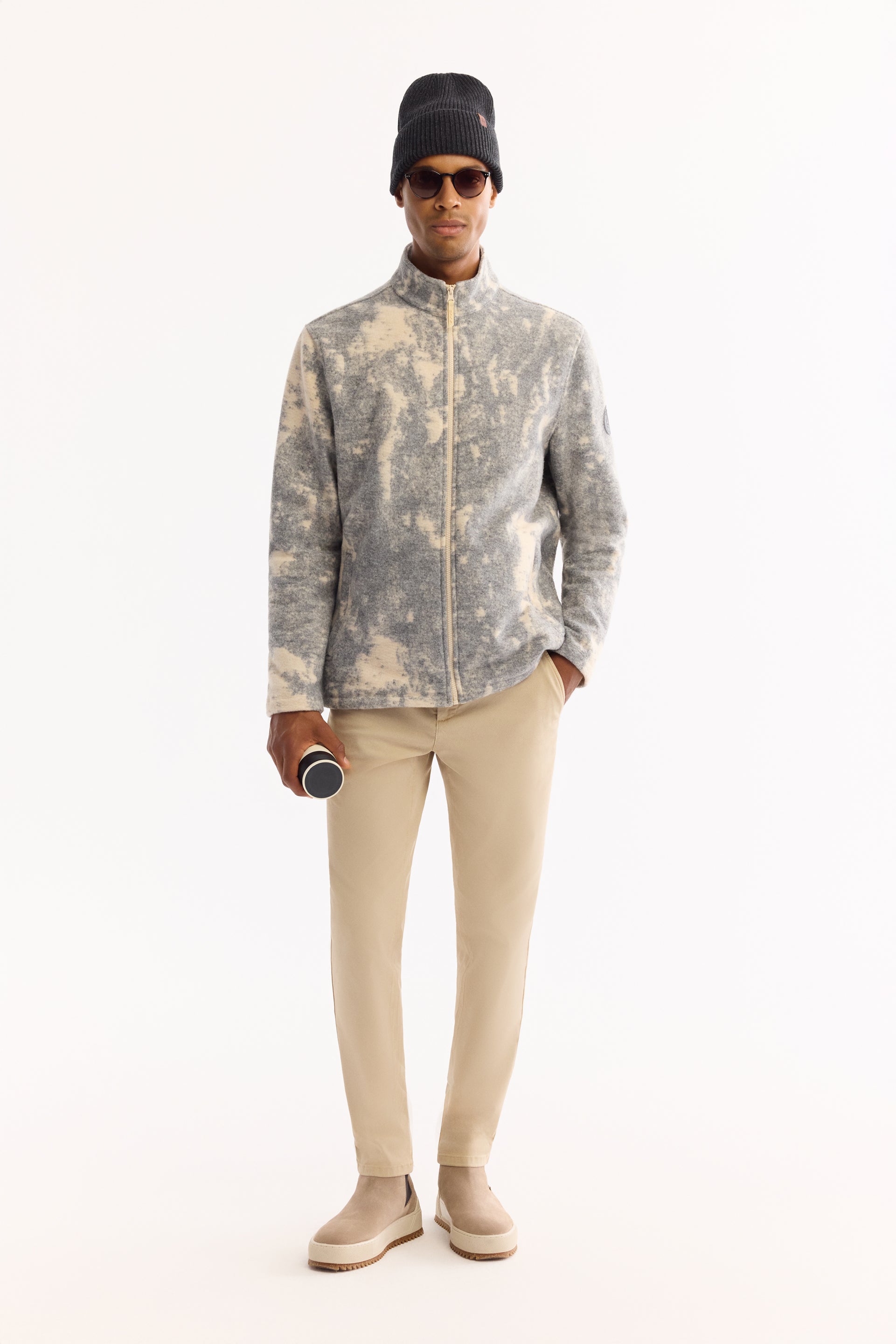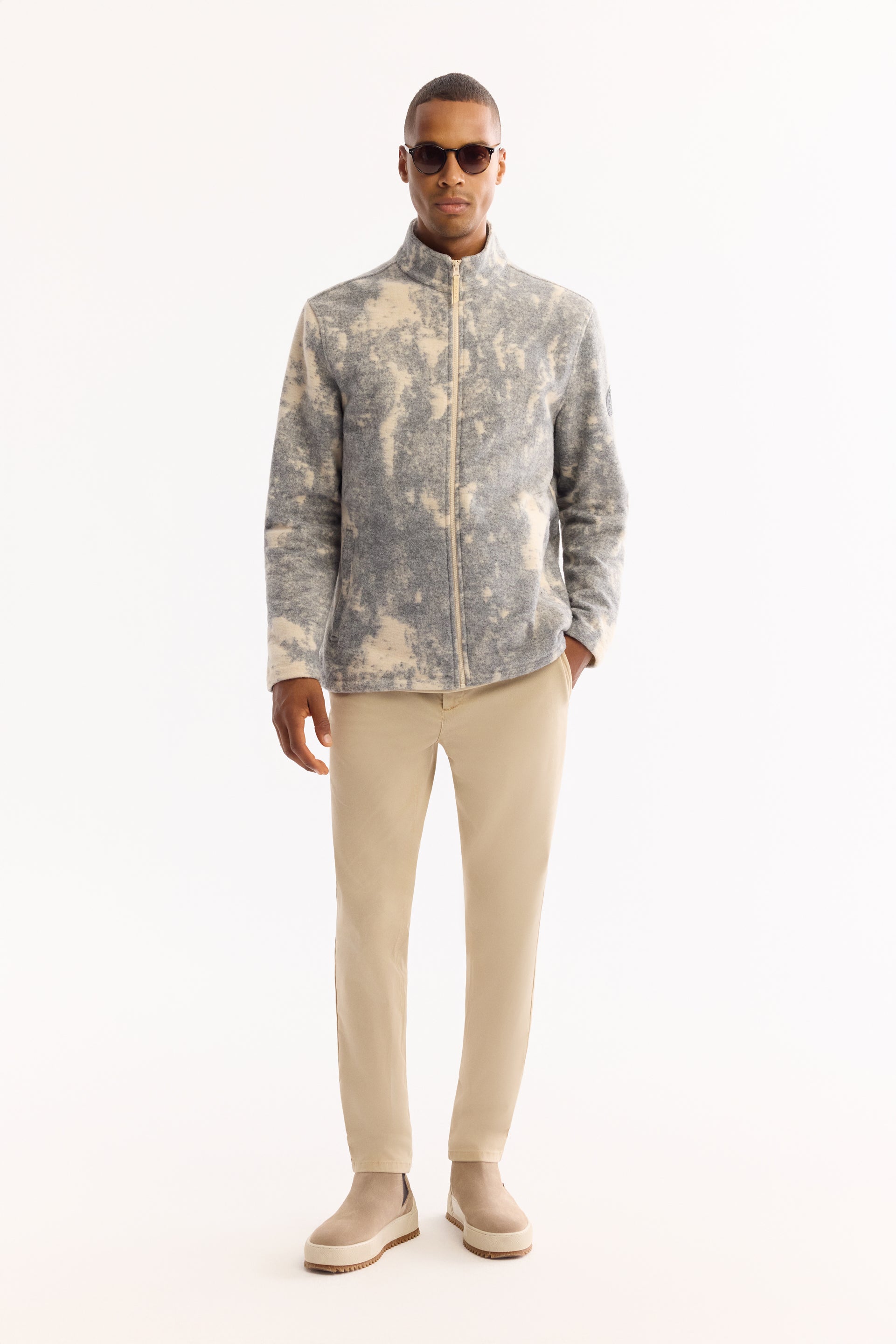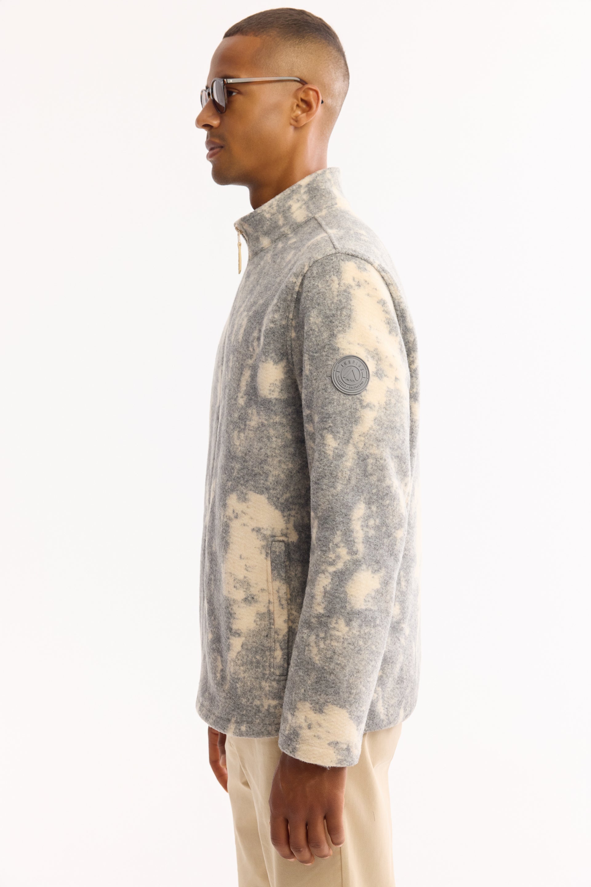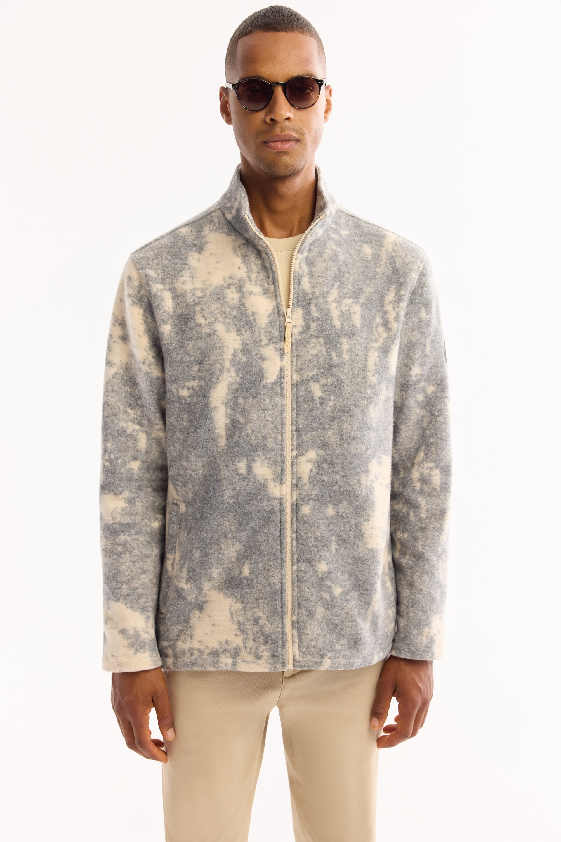 Bej-antrasit Dik Yaka Fermuarlı Blok Renkli Peluş Kumaş Hırka