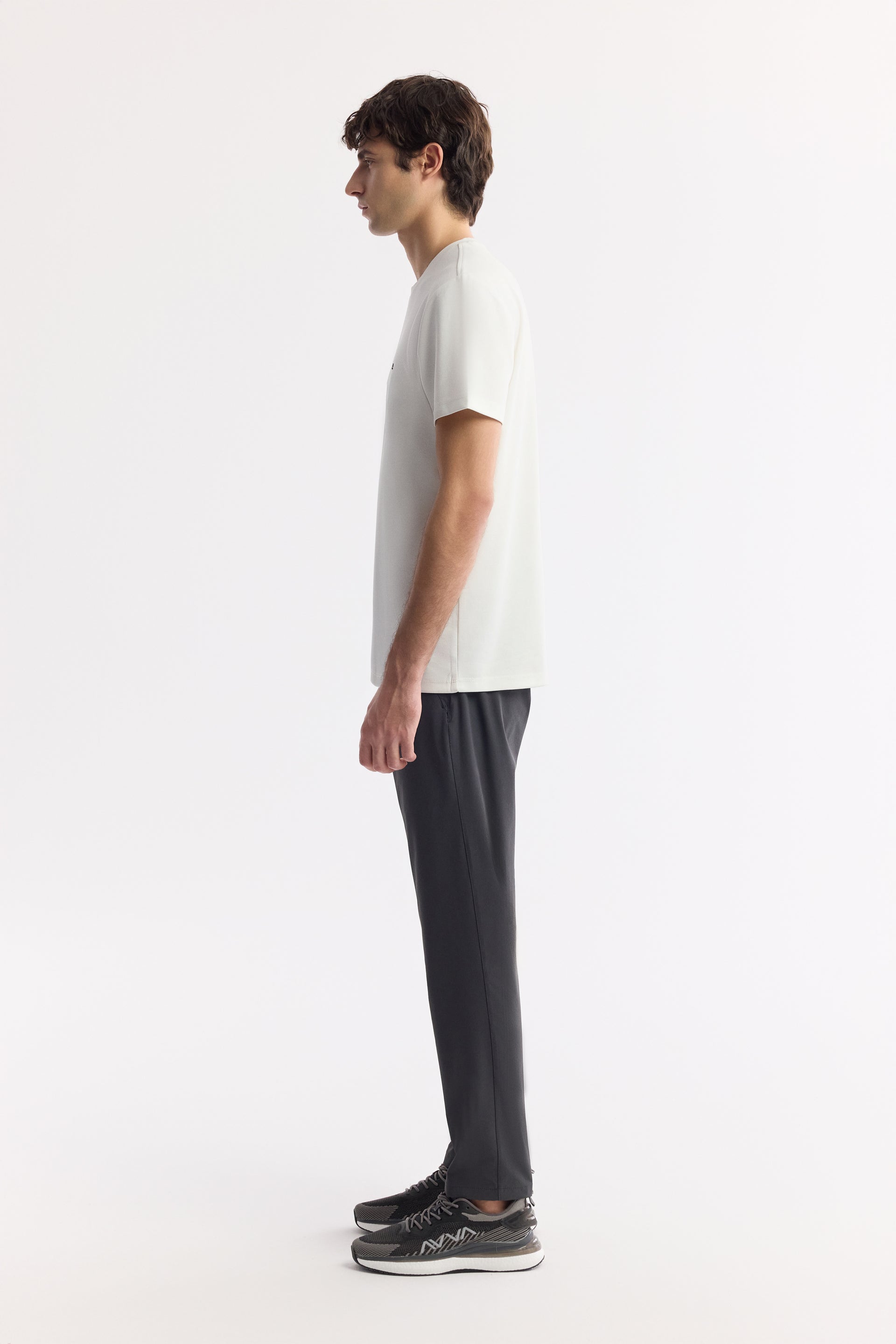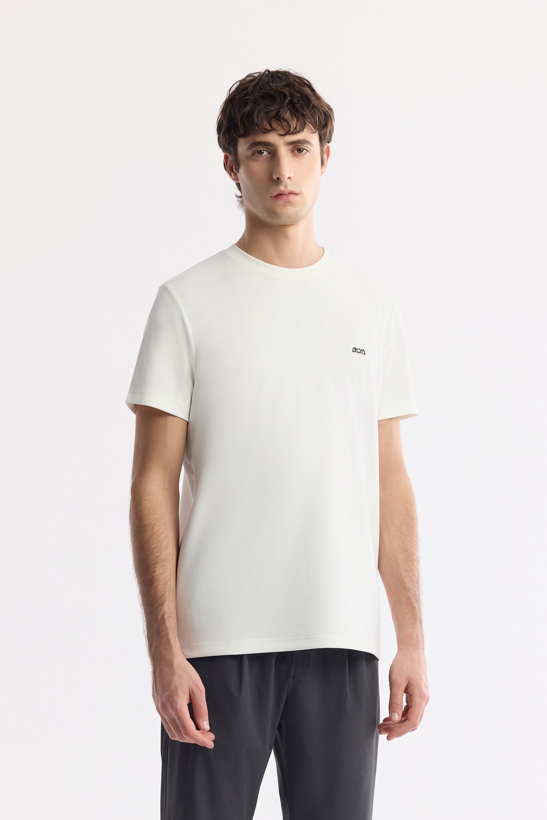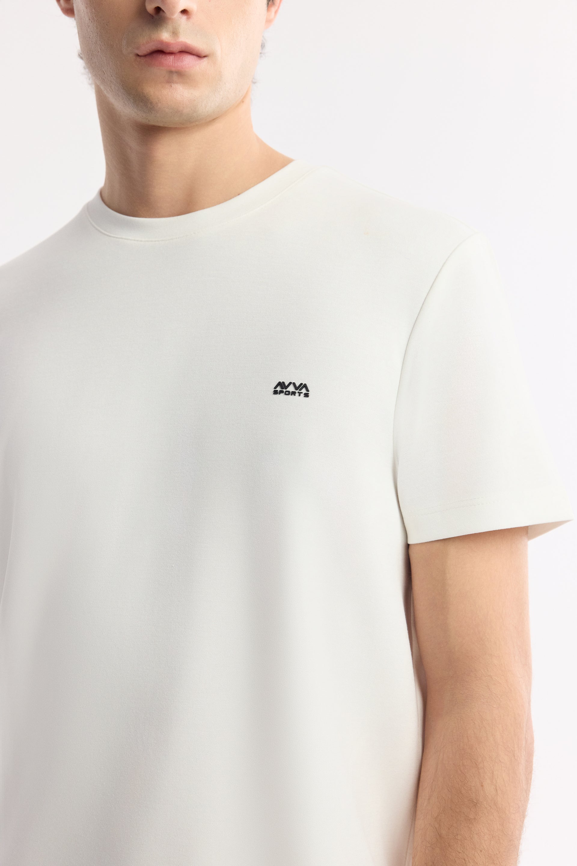 Ekru Bisiklet Yaka Düz Interlok Kumaş T-shirt