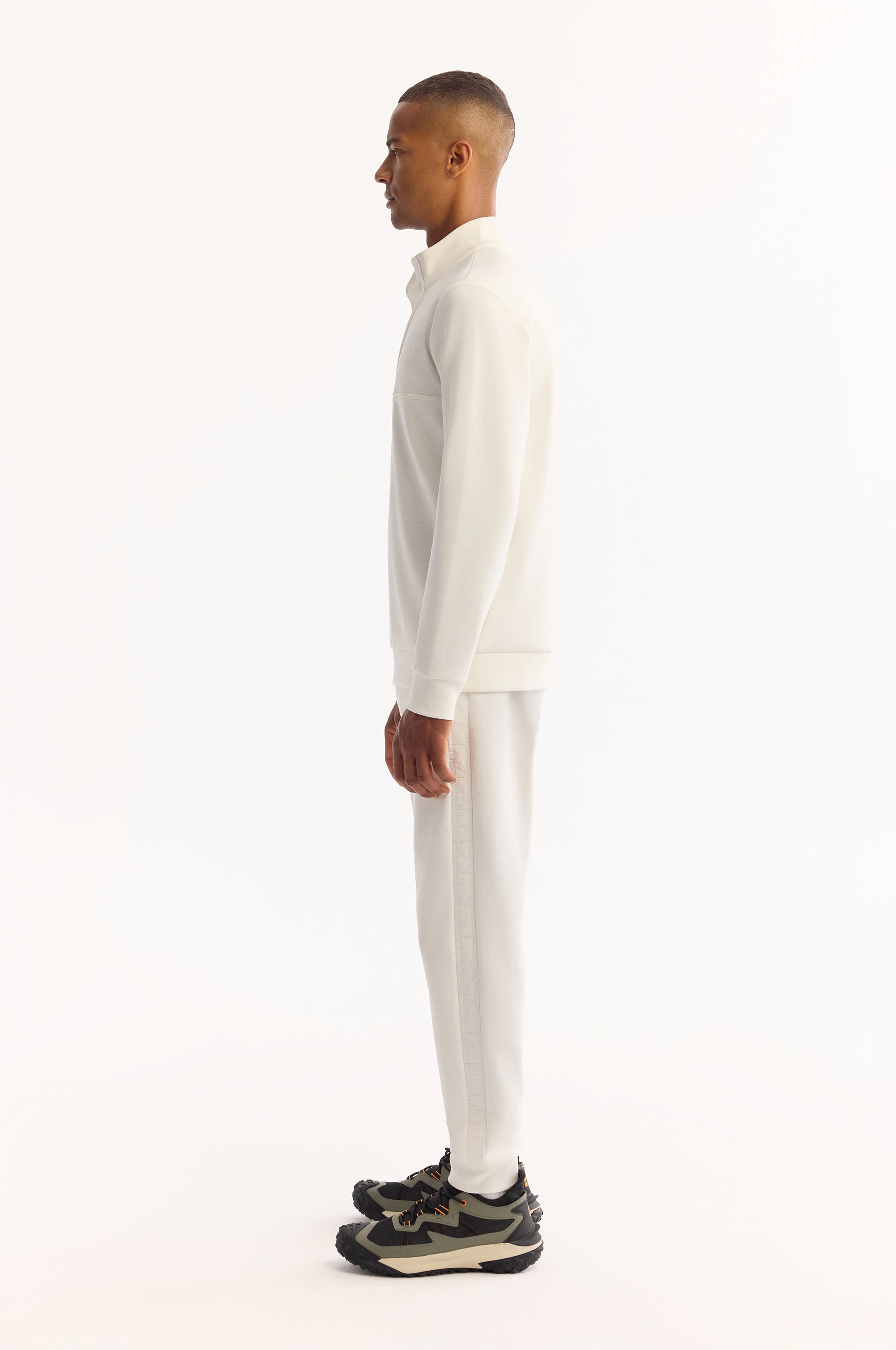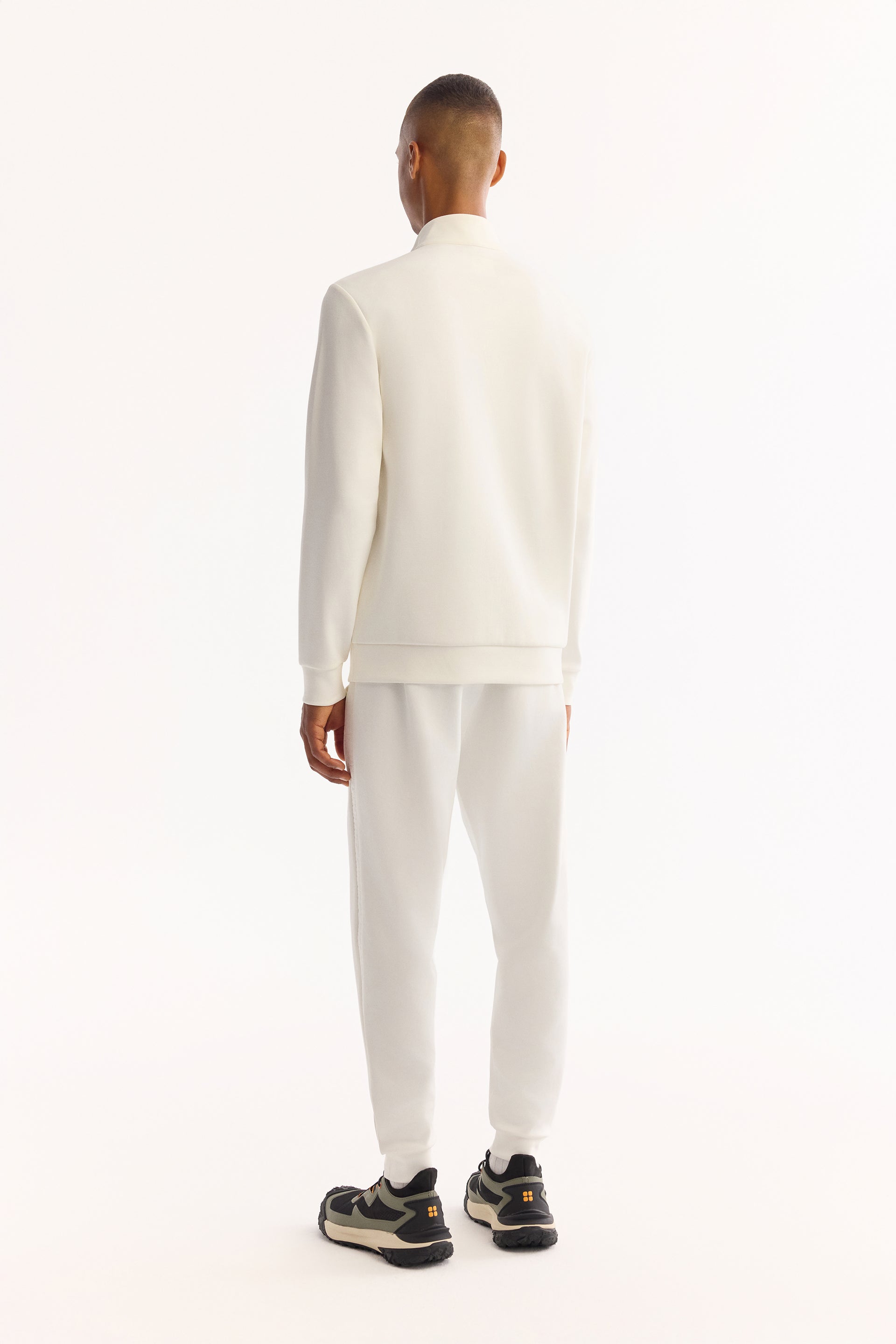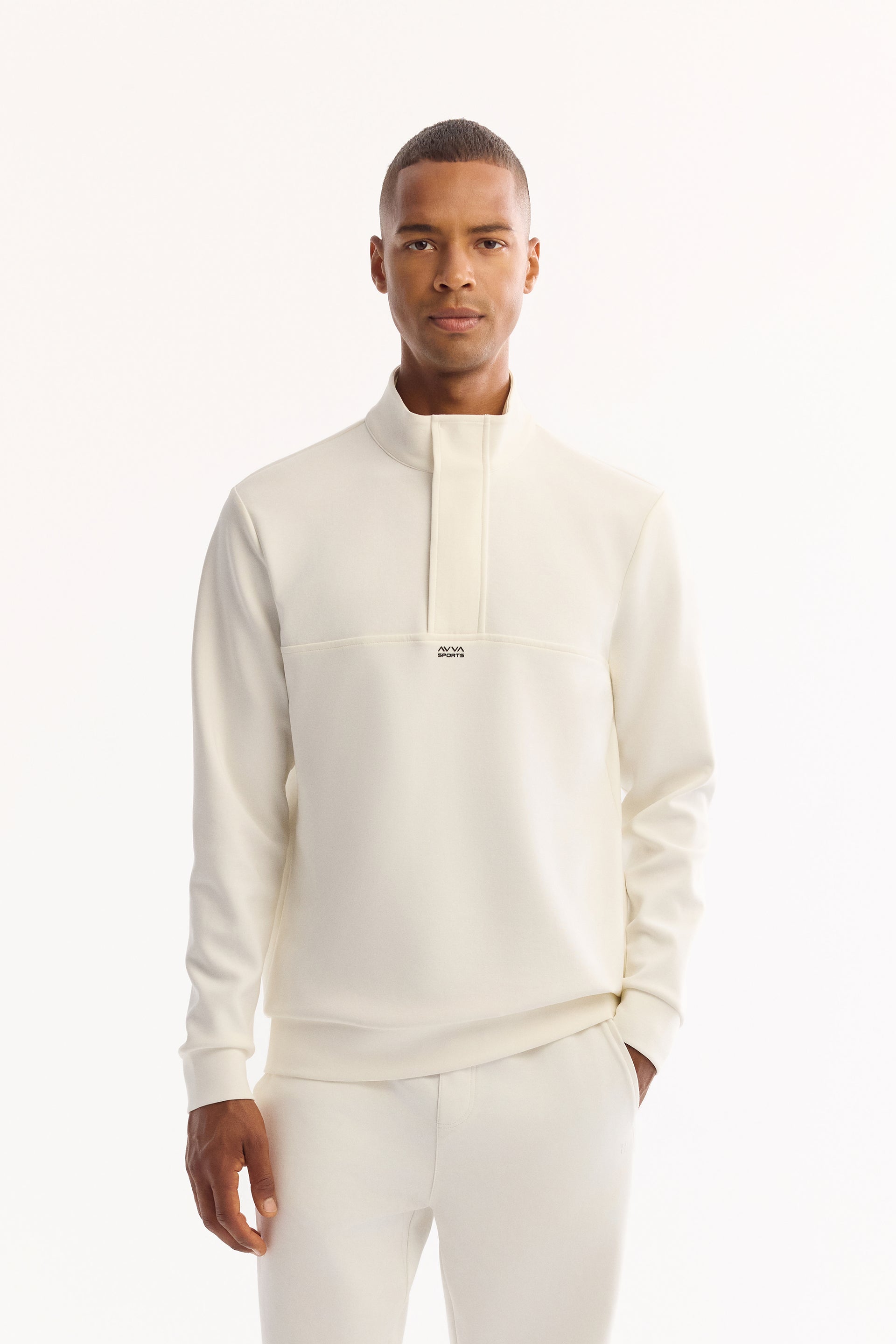 Ekru Fermuarlı Dik Yaka Düz Interlok Kumaş Sweatshirt