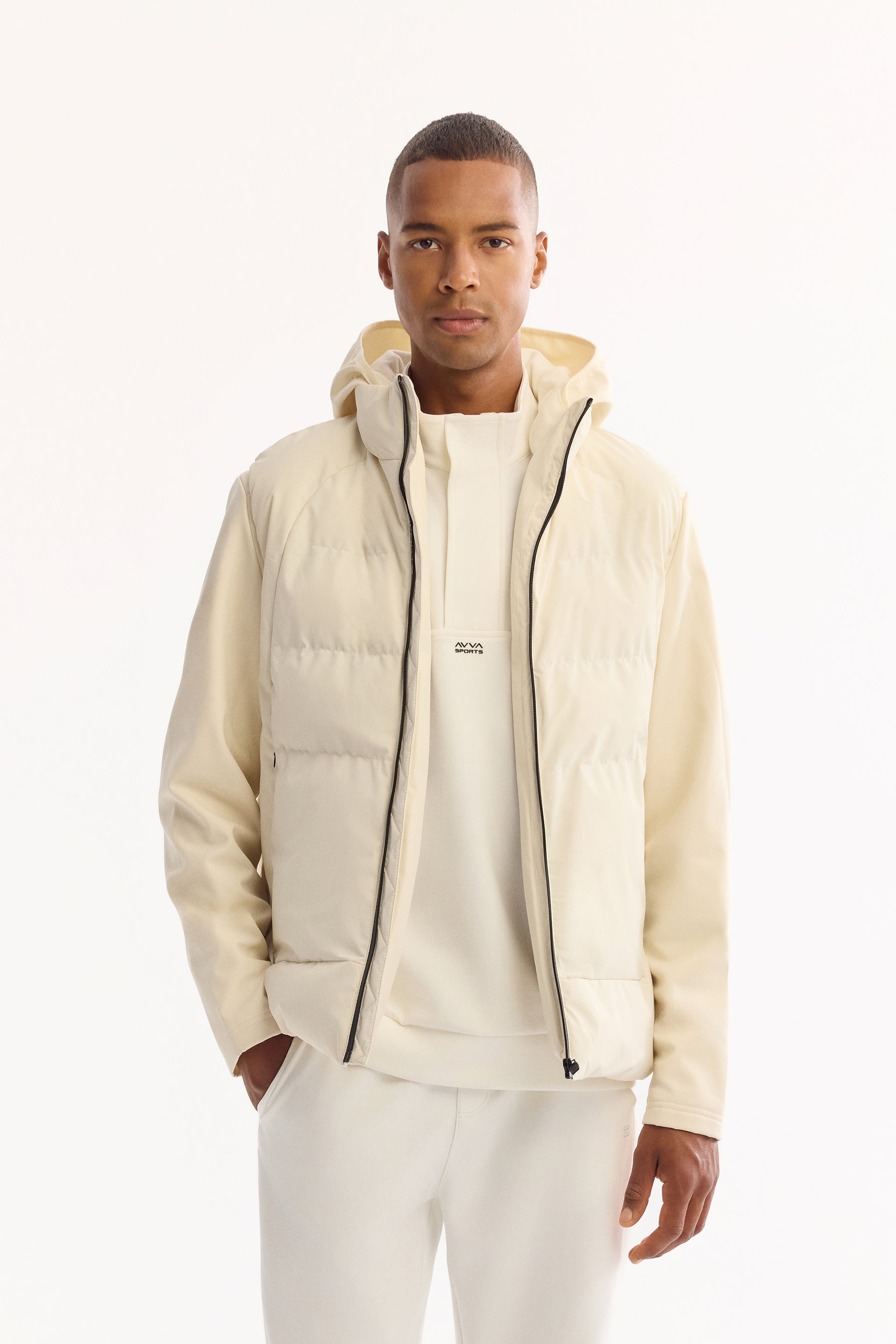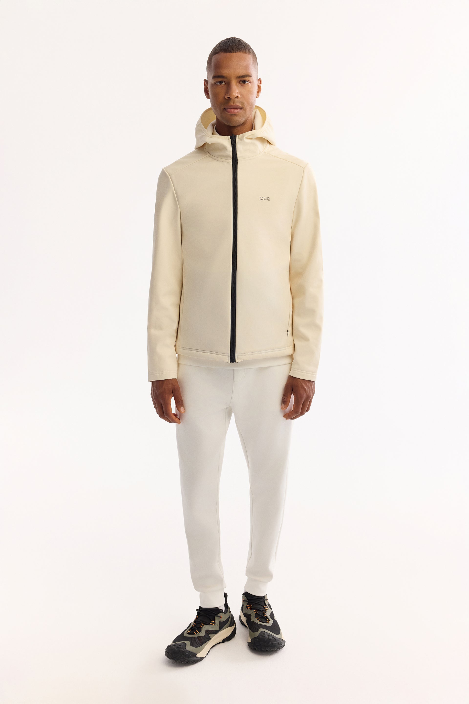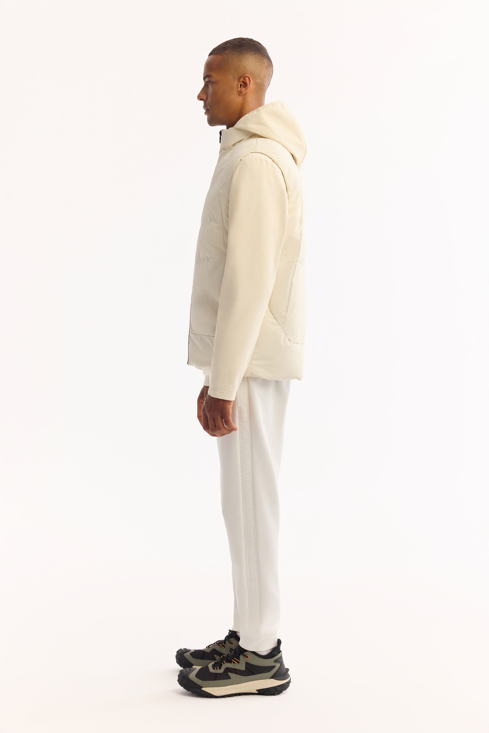 Ekru Kapüşonlu Yaka Düz Polyester Kumaş Mont