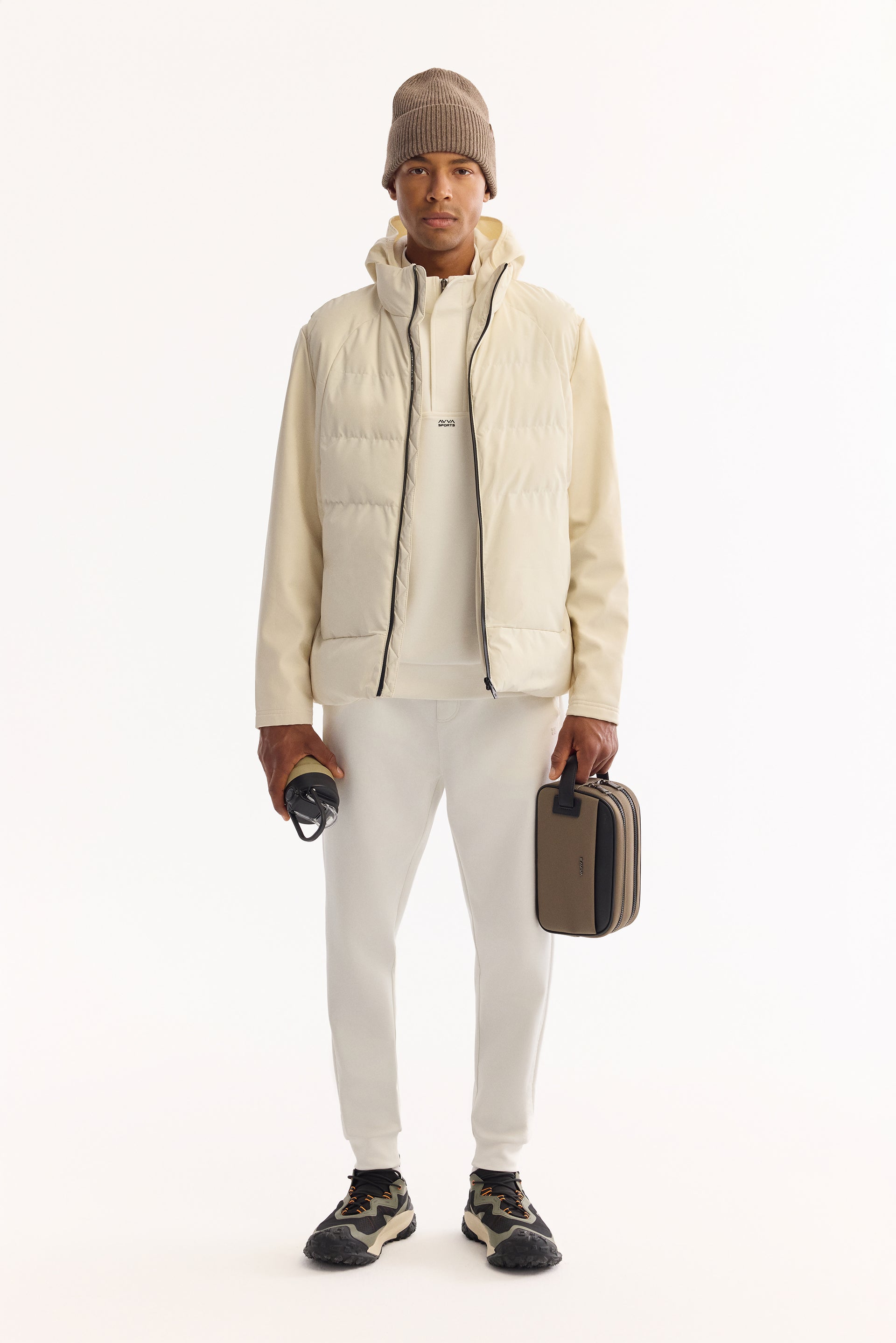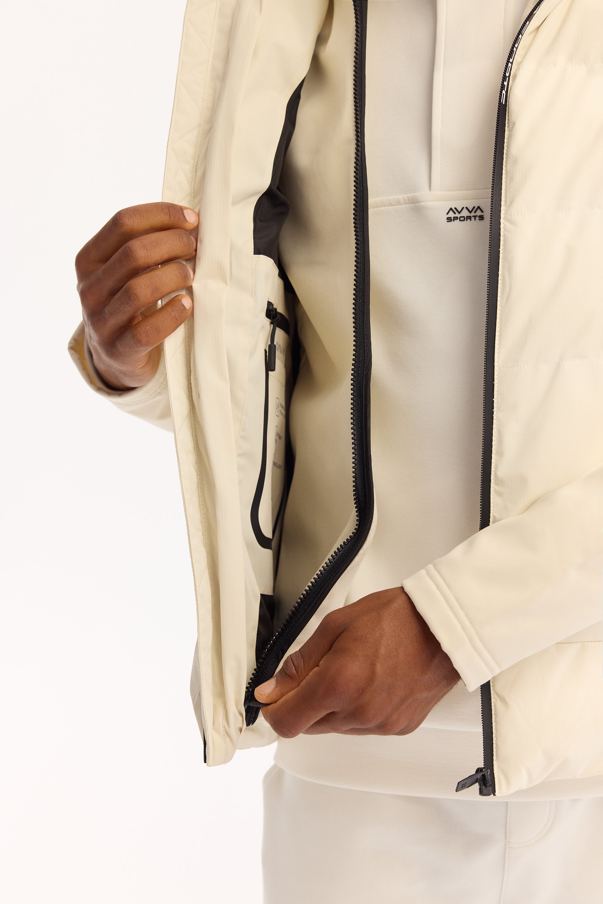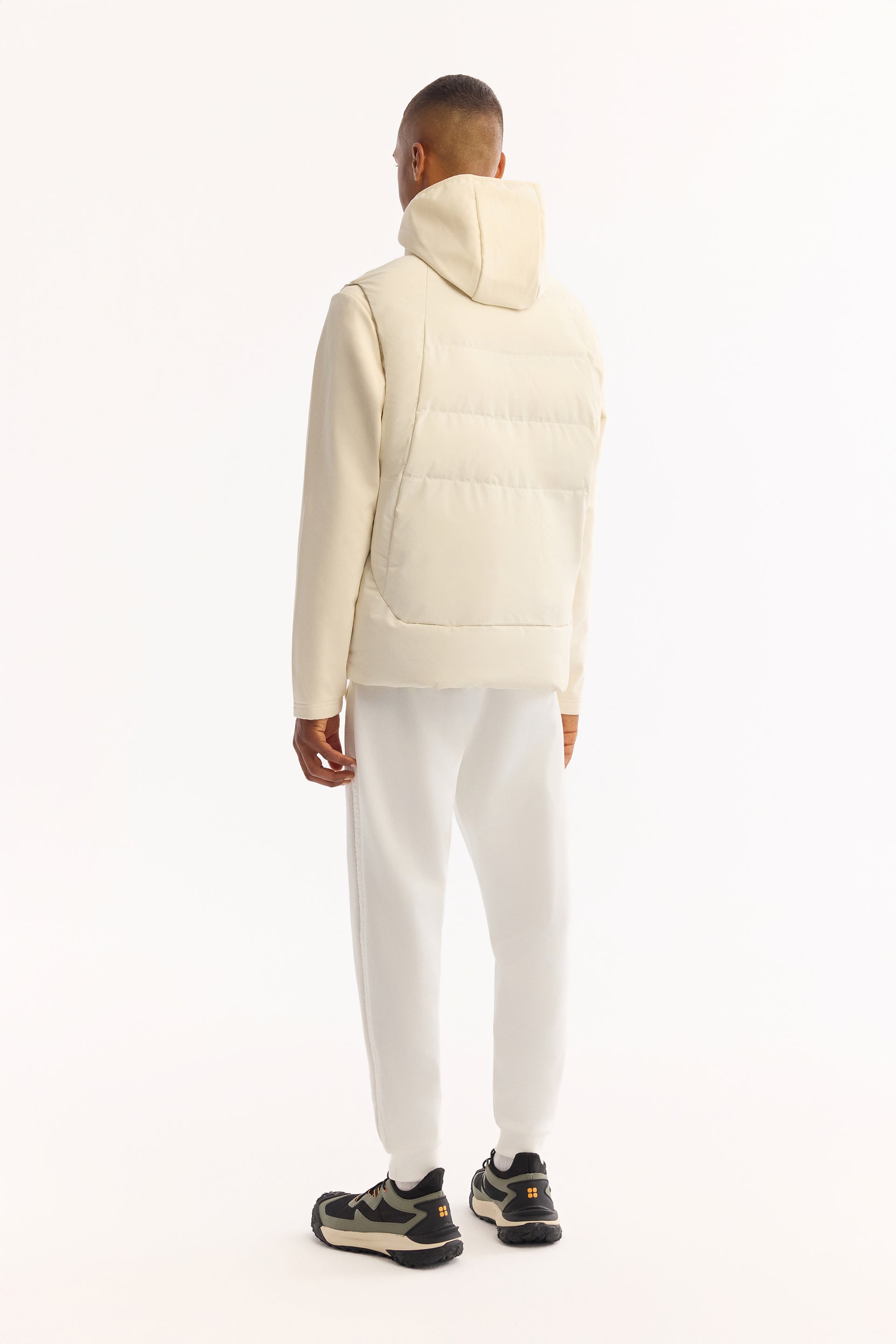 Ekru Kapüşonlu Yaka Düz Polyester Kumaş Mont